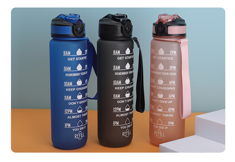 폭발 1000ML 그라디언트 공간 컵 젖빛 플라스틱 컵 야외 스포츠 밀짚 컵 시간 스케일 컵스토어 가기