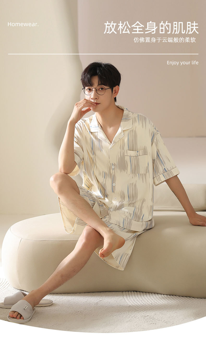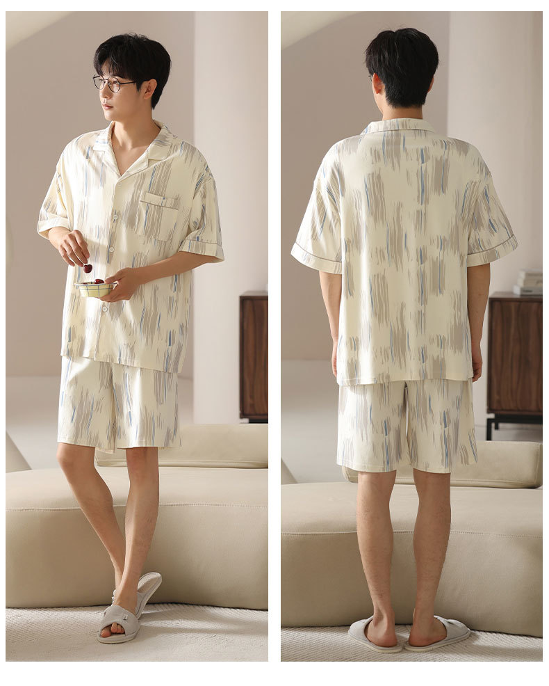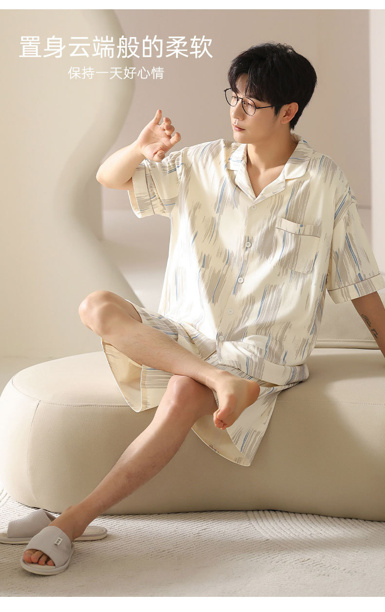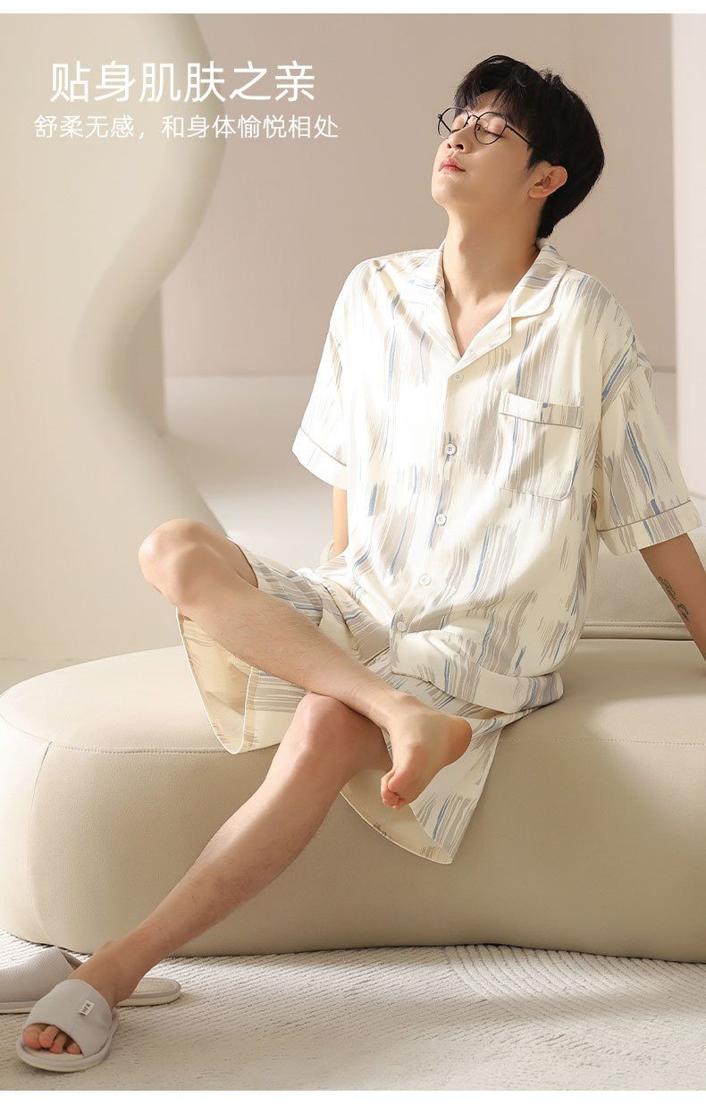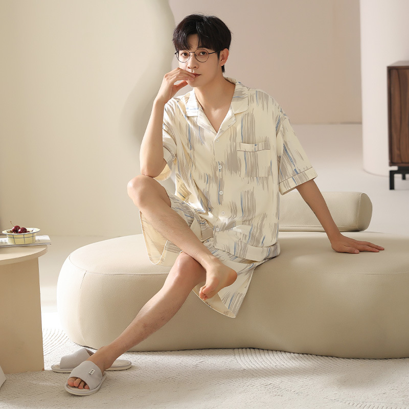시원한 남성용 잠옷 여름 모달 코튼 얇은 홈웨어 반팔 반바지 남성용 투피스 잠옷스토어 가기