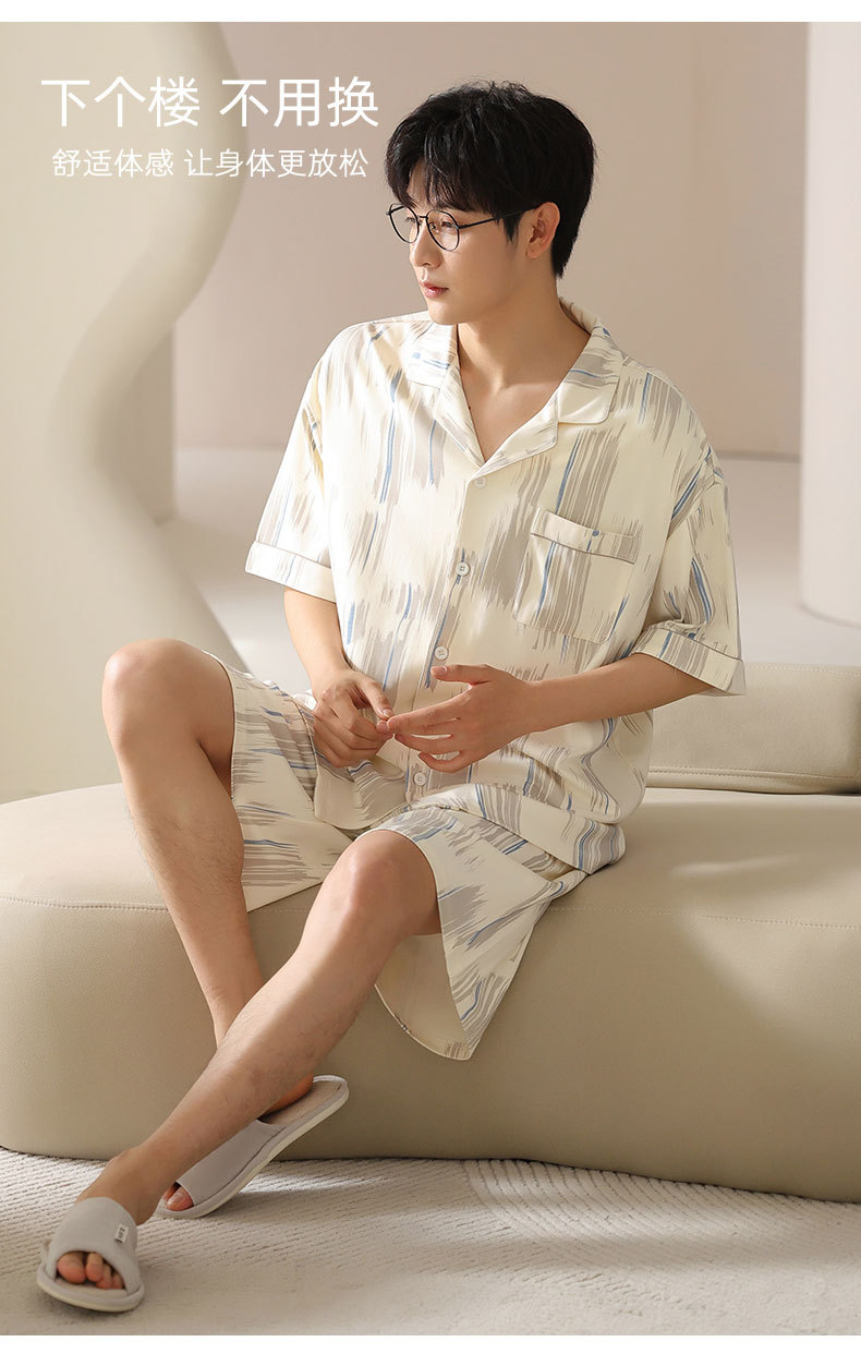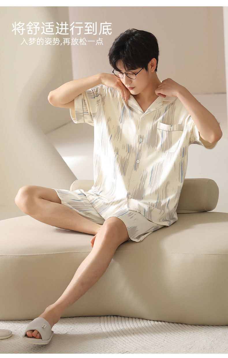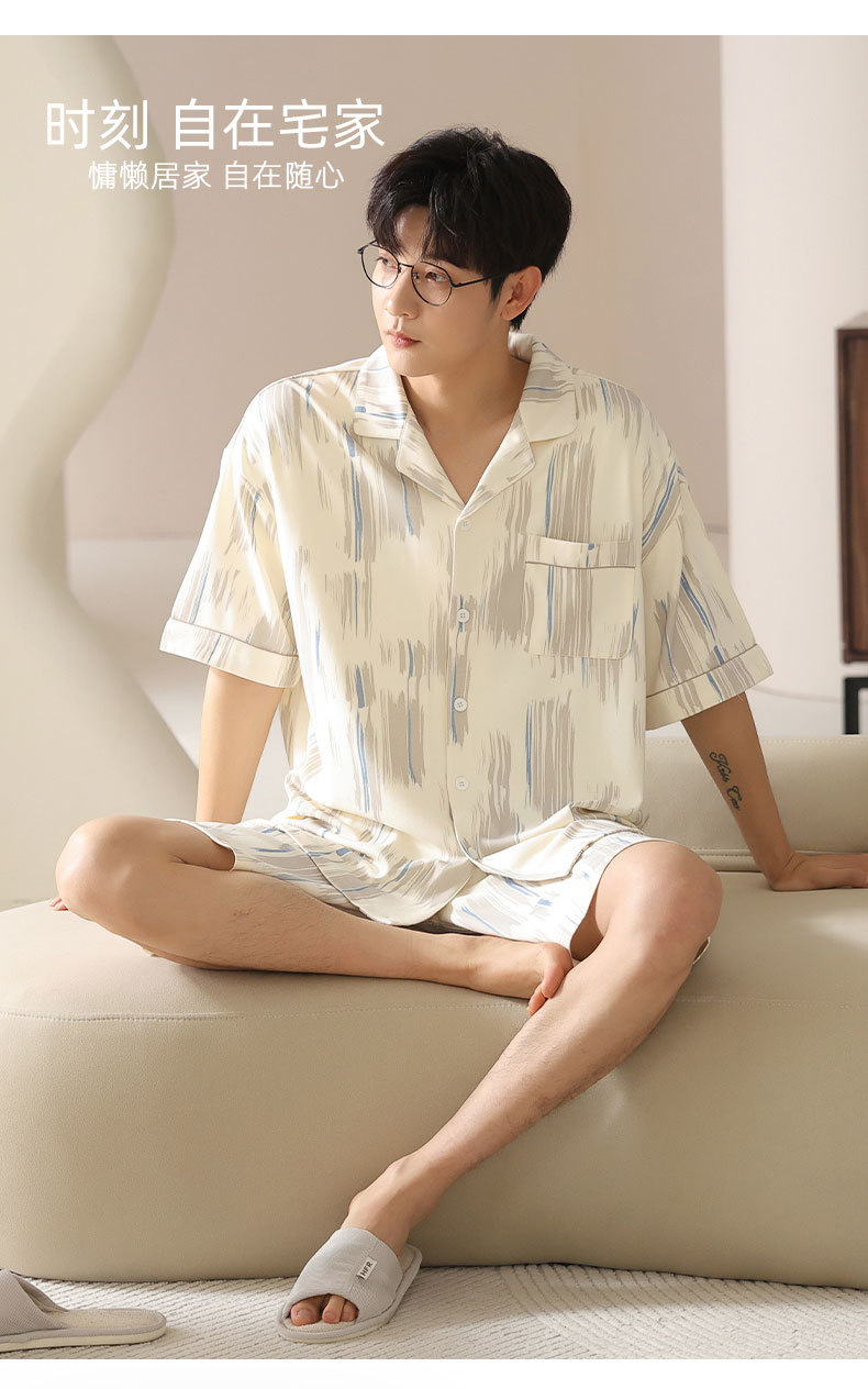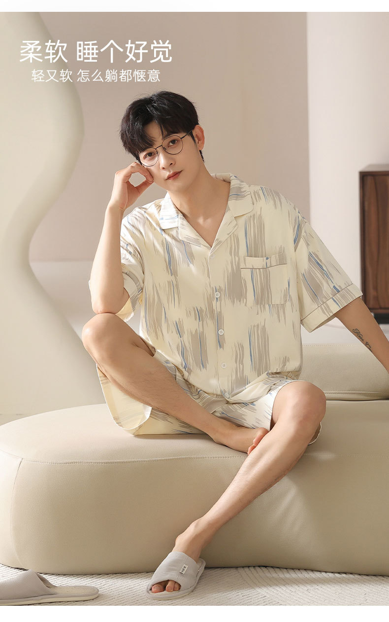 시원한 남성용 잠옷 여름 모달 코튼 얇은 홈웨어 반팔 반바지 남성용 투피스 잠옷스토어 가기