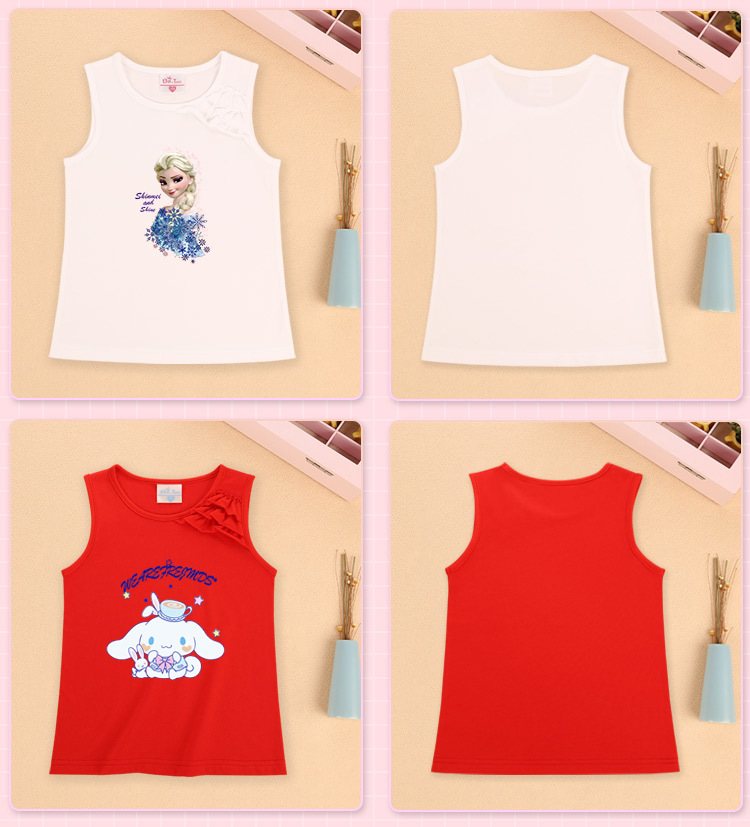 만화 어린이 의류 2024 새로운 여름 소녀 민소매 조끼 얇은 외부 탑 내부 스트랩 아동복스토어 가기