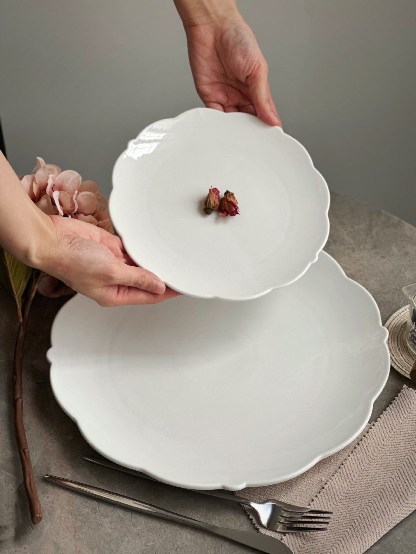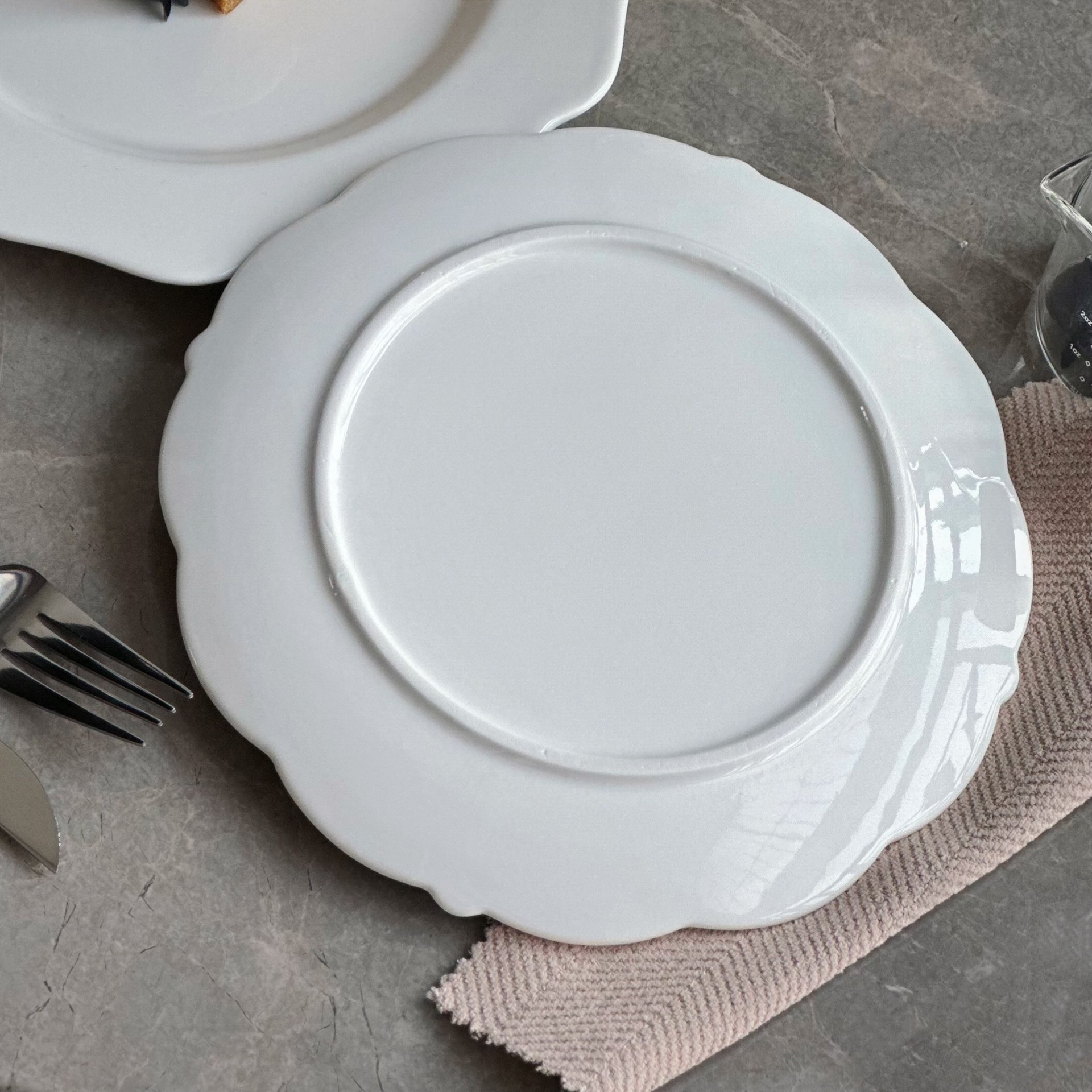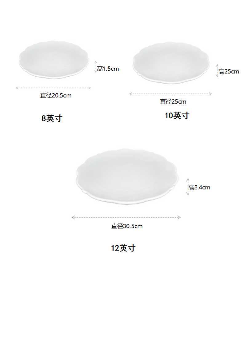간단한 세라믹 플랫 플레이트 레이스 유럽 스타일 호텔 레스토랑 웨스턴 디저트 플레이트 케이크 플레이트 순수 화이트 언더 유약 다채로운 디쉬 포인트 플레이트