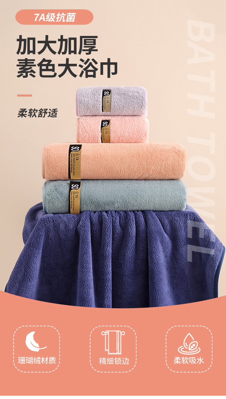 일반 색상 항균 산호 양털 대형 목욕 타월 성인 가정용 부드러운 흡수성 목욕 타월 대형 두꺼운 목욕 타월 도매스토어 가기