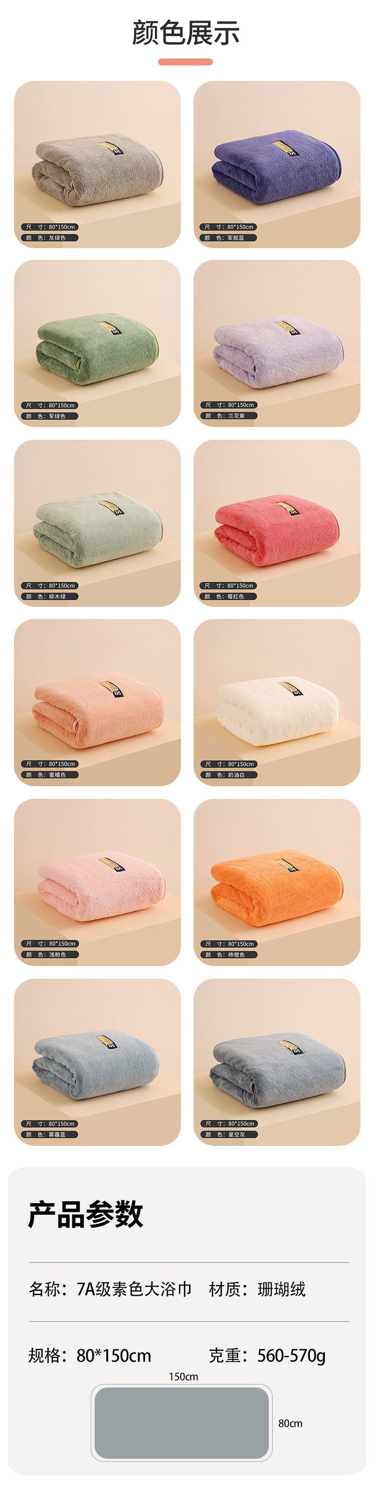 일반 색상 항균 산호 양털 대형 목욕 타월 성인 가정용 부드러운 흡수성 목욕 타월 대형 두꺼운 목욕 타월 도매