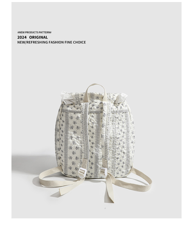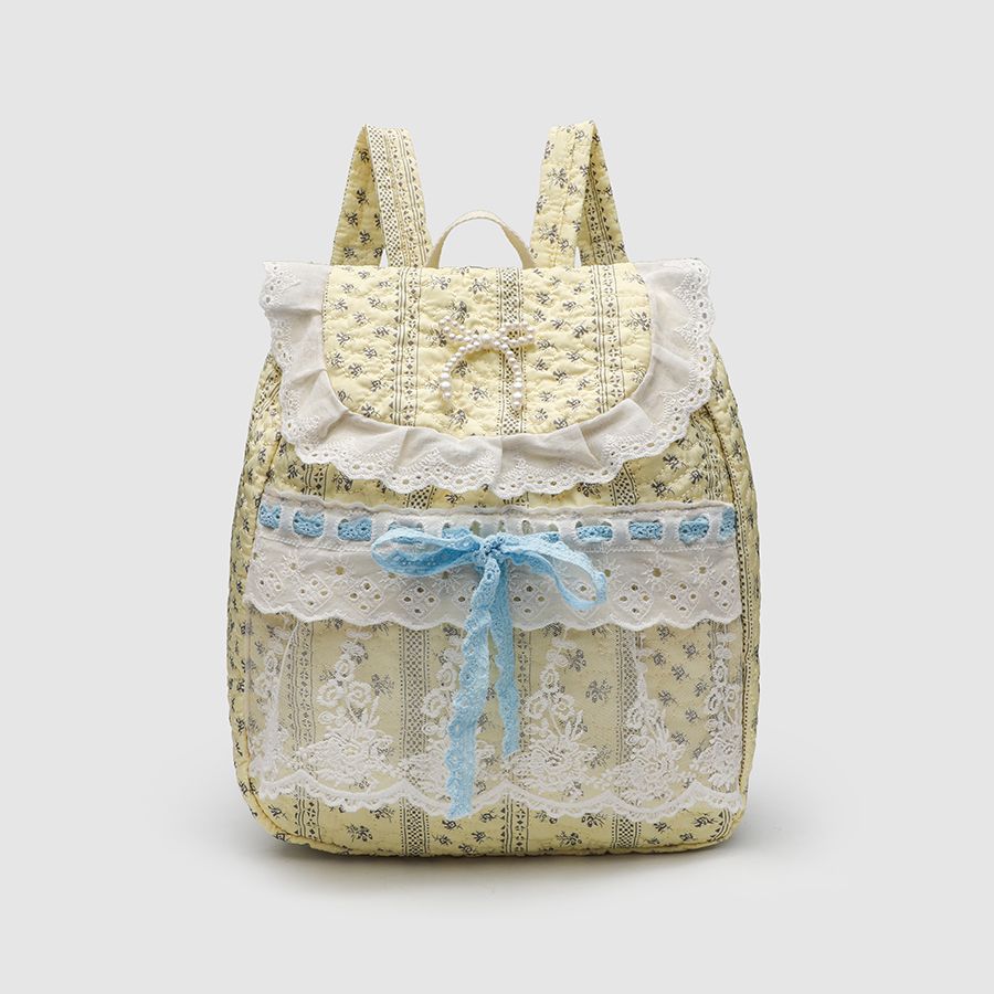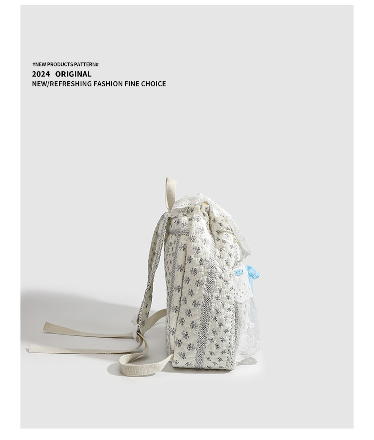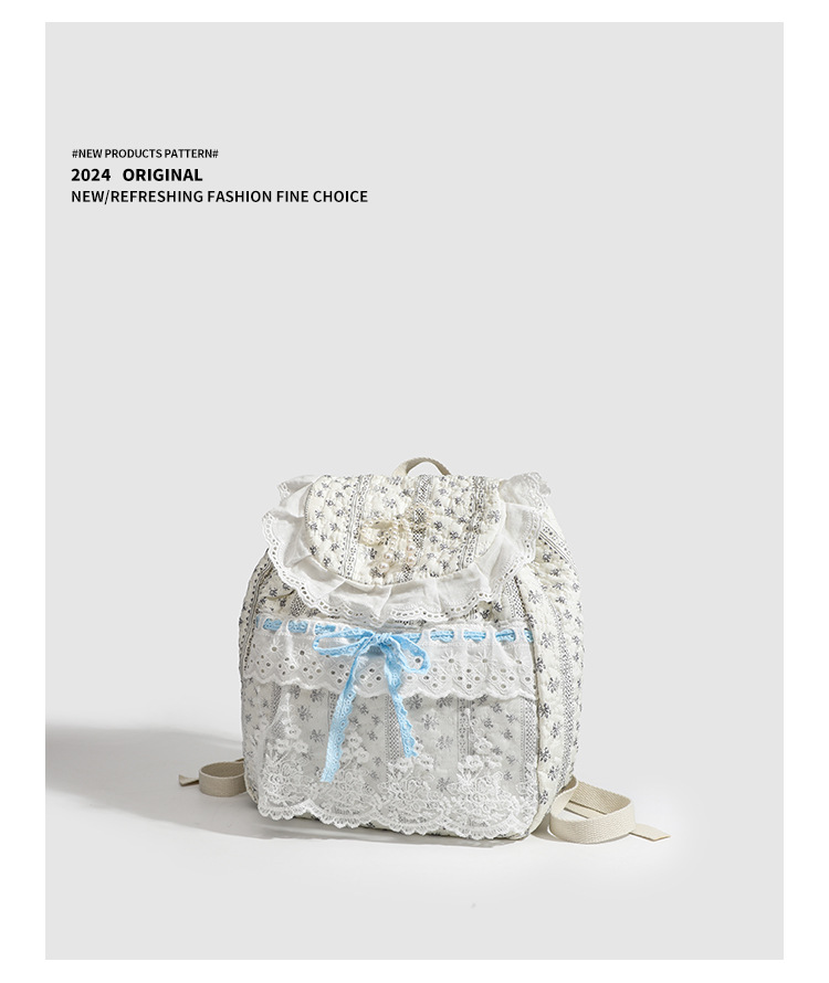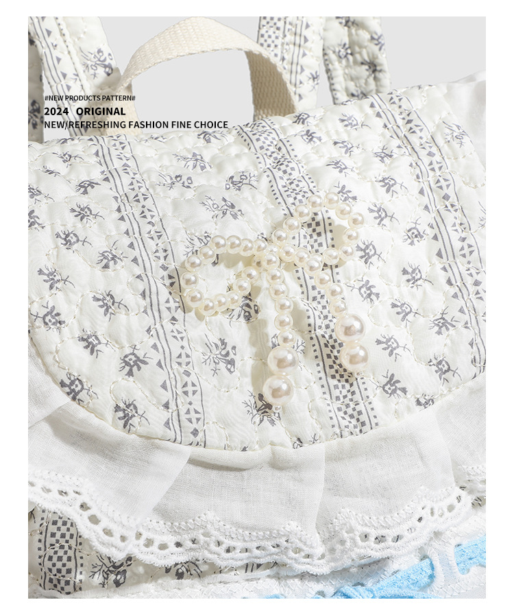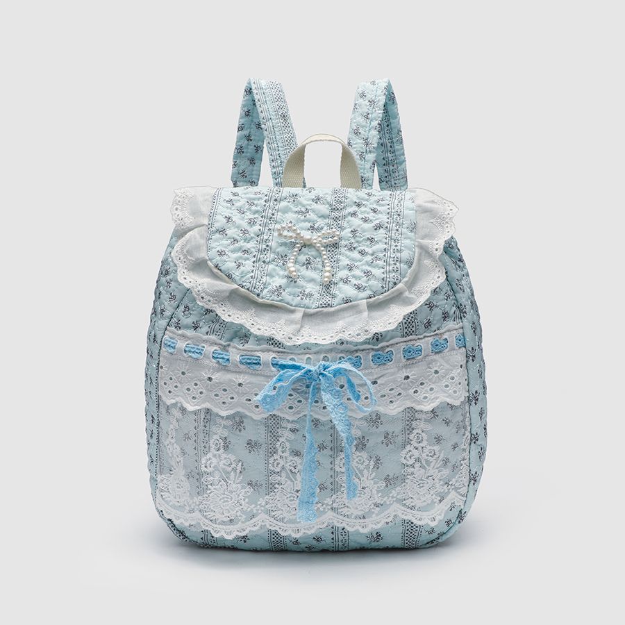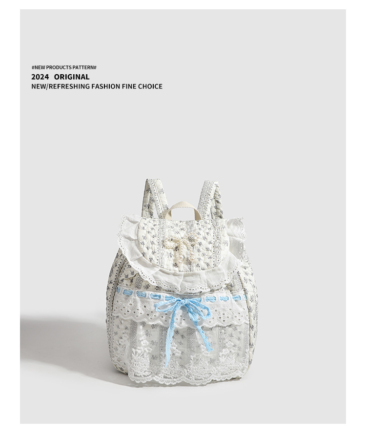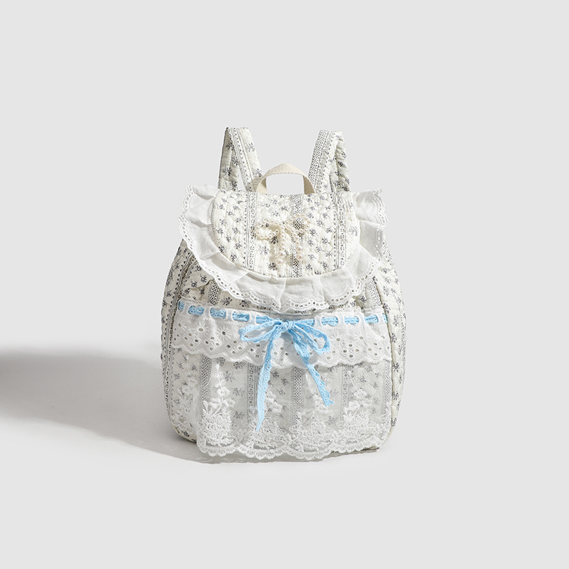 2026년 신상 패션 다용도 오리지널 수제 가방 꽃무늬 레이스 스티치 주름 리본 백팩 천 가방 여성용스토어 가기