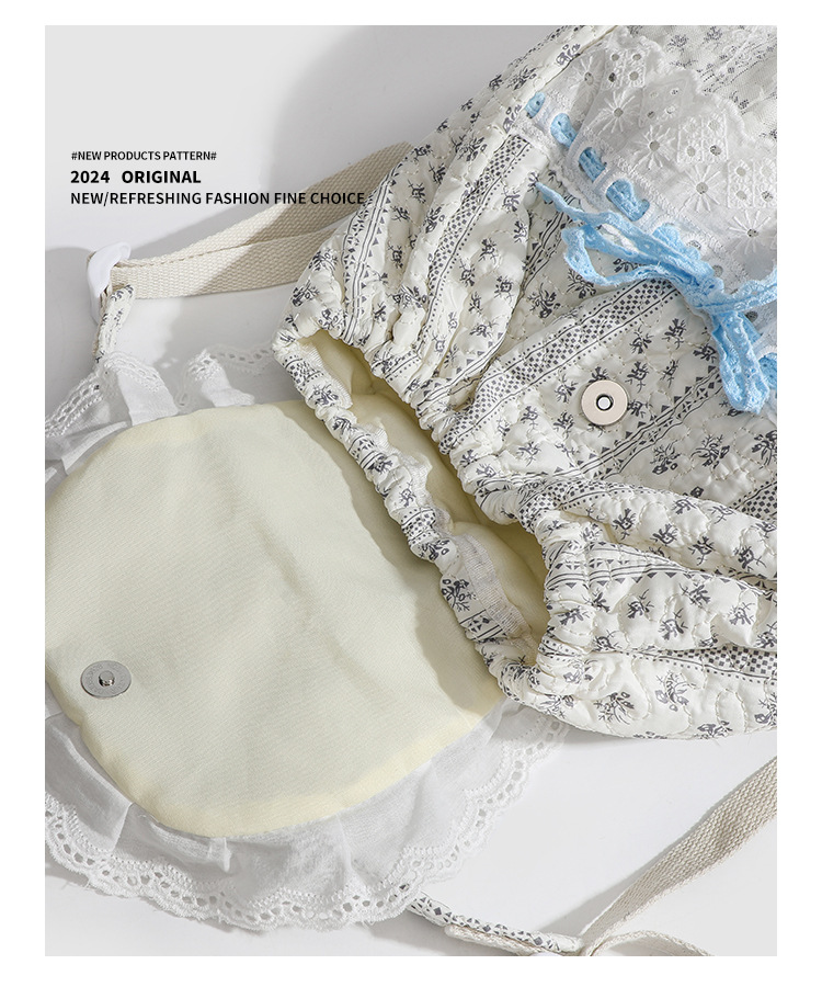 2026년 신상 패션 다용도 오리지널 수제 가방 꽃무늬 레이스 스티치 주름 리본 백팩 천 가방 여성용