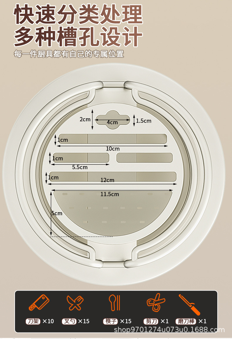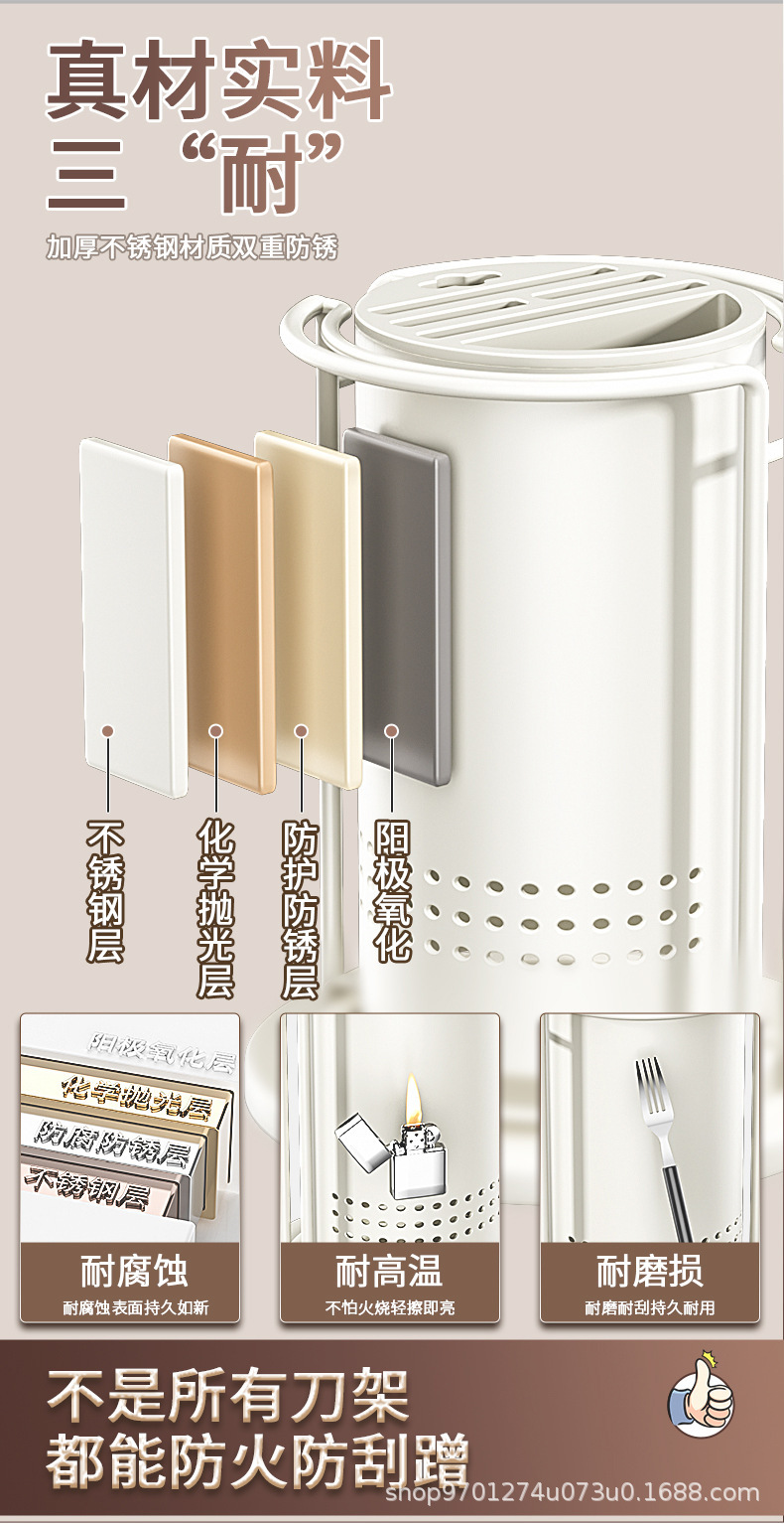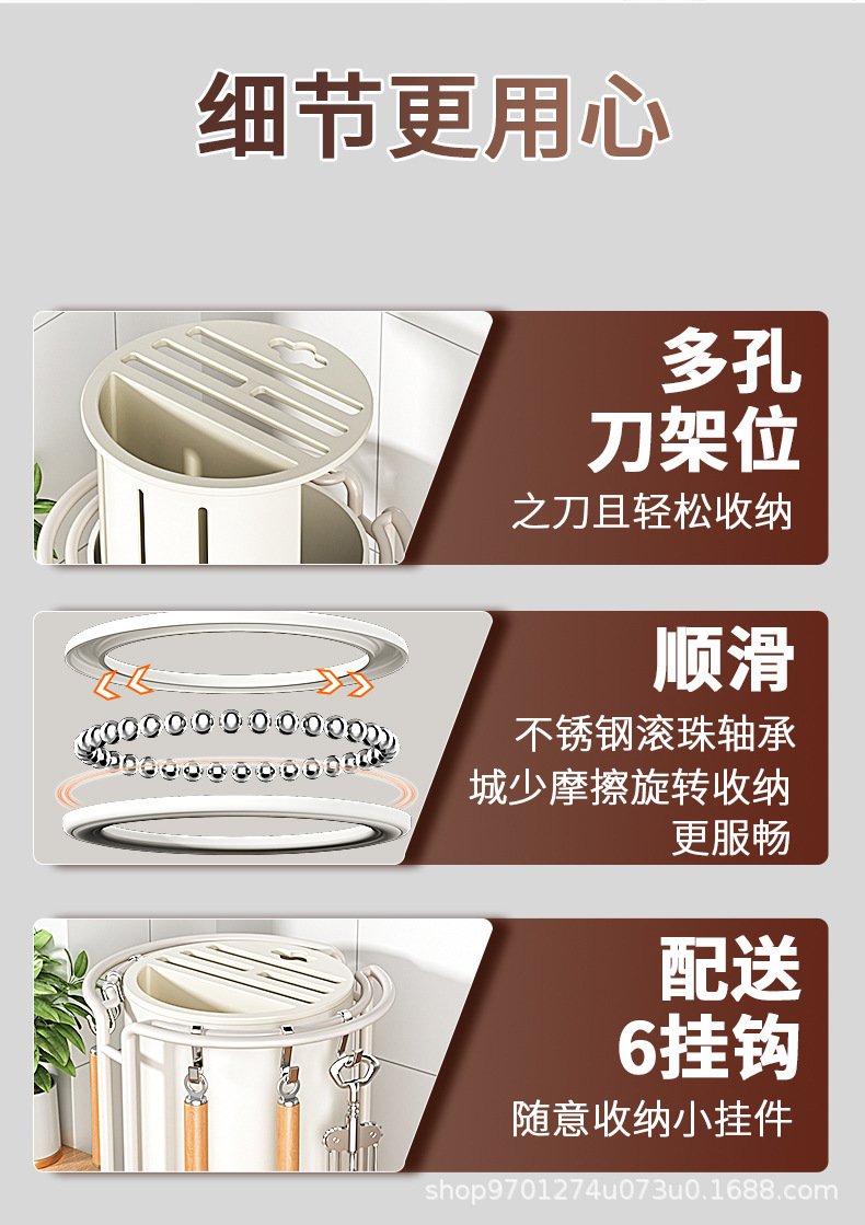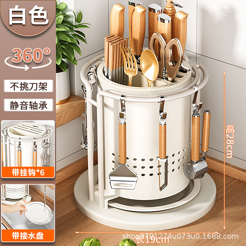 • 후크 워터 트레이가있는 회전 칼 홀더 아이보리 화이트