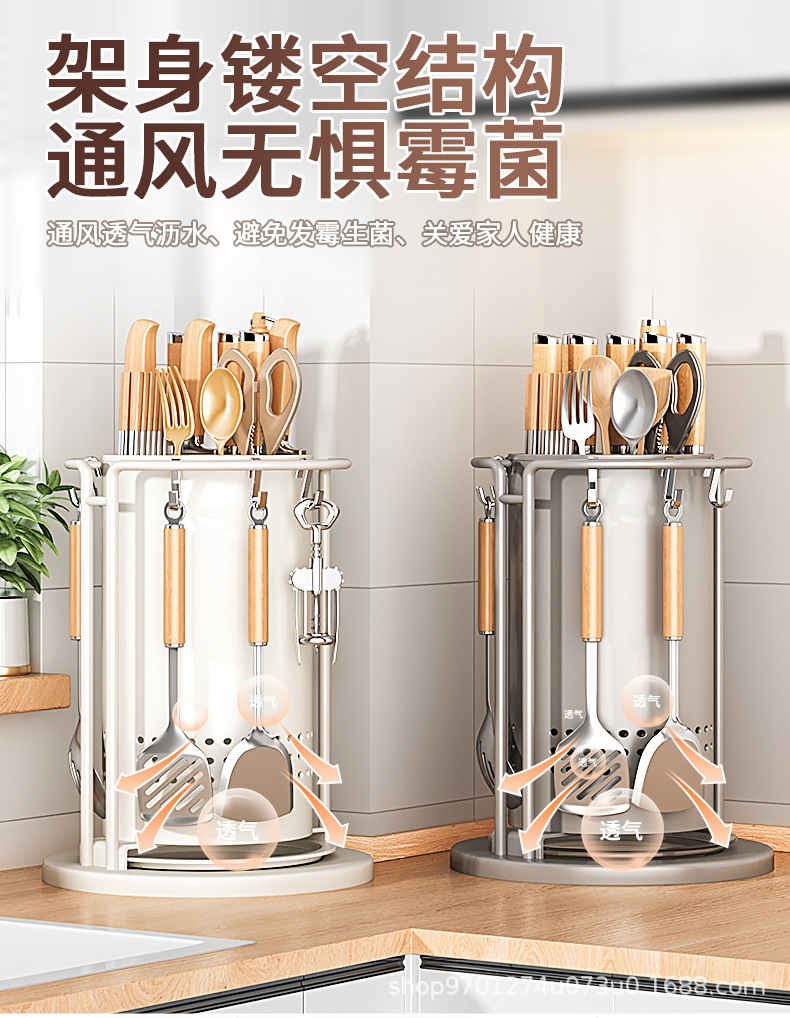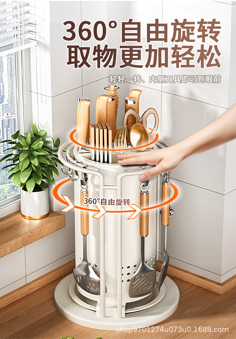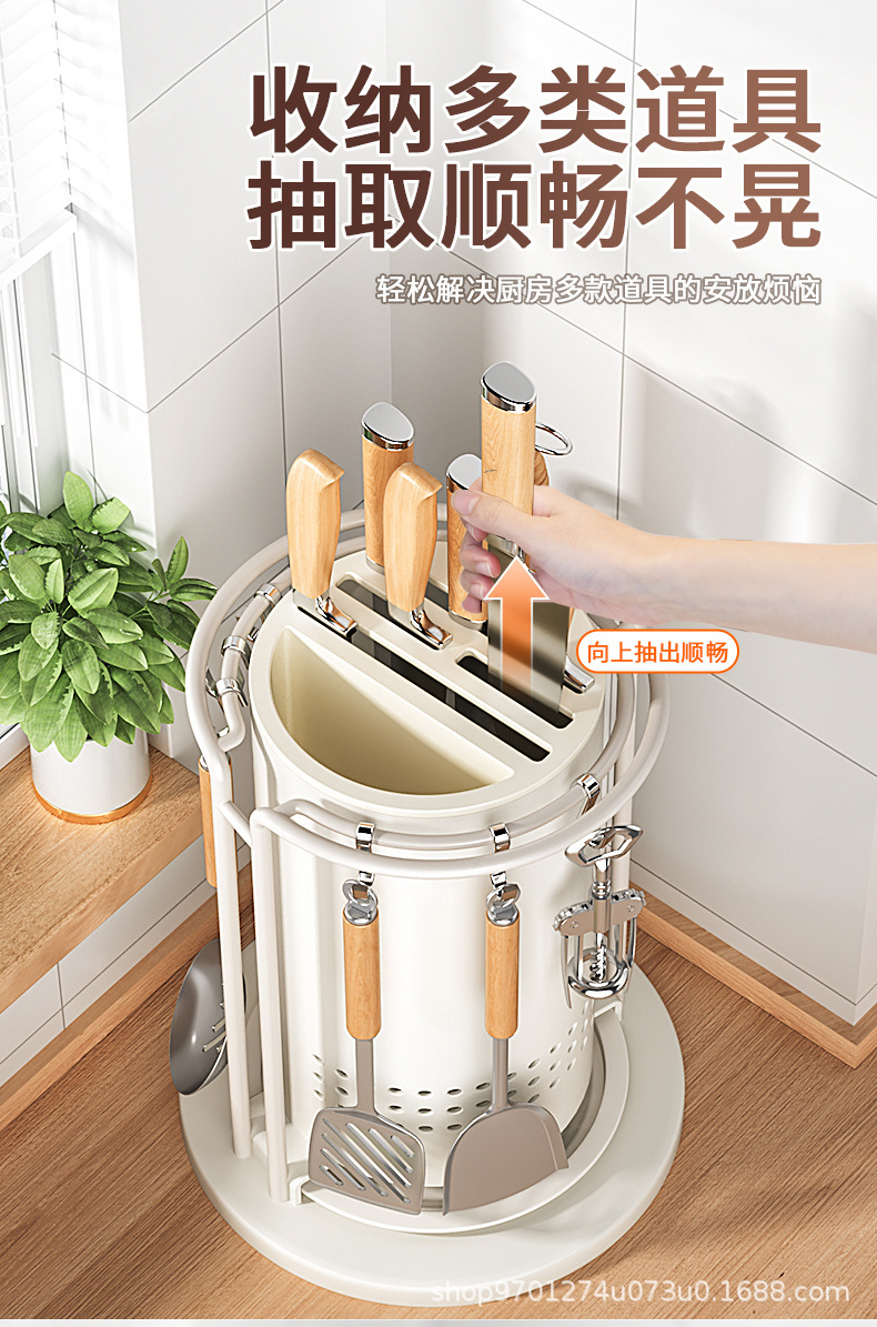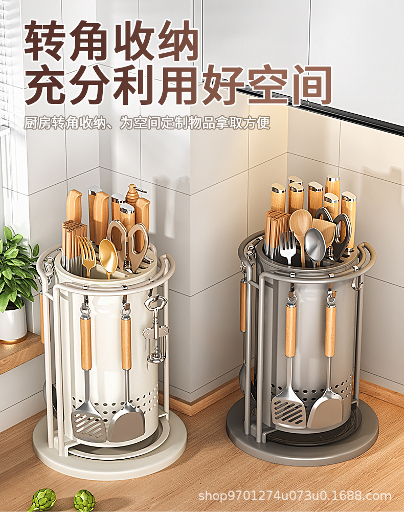 주방 회전 칼 랙 스토리지 랙 주걱 스푼 젓가락 튜브 주방 칼 홀더 통합 스토리지 박스 다기능 홈 아티팩트스토어 가기