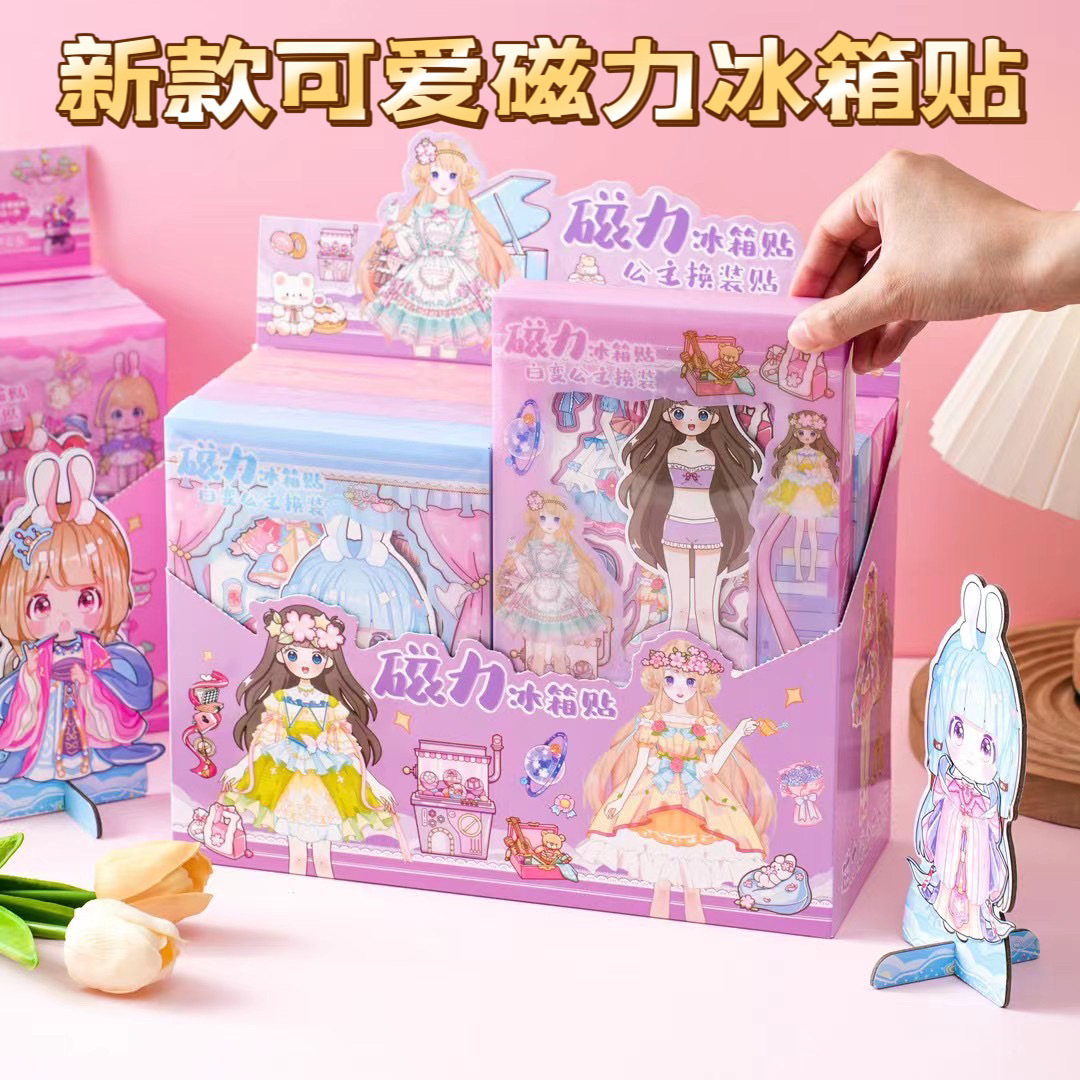 자기 흡입은이 자기 냉장고 스티커 8 을 상자 자기 변화 쇼 스티커 조용한 책 아름다운 소녀 스티커 세트 변경스토어 가기