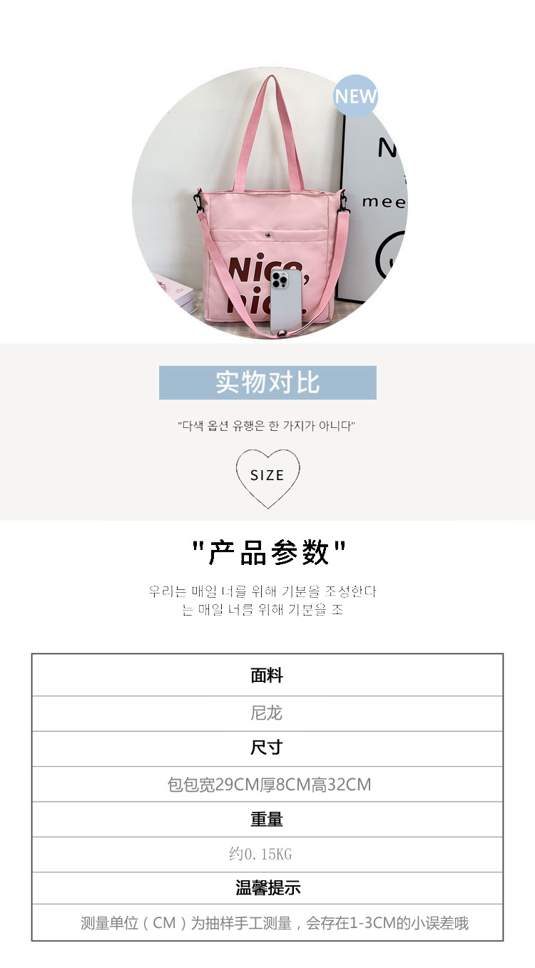 质地:尼龙布闭合方式:拉链流行元素:车缝线款式:单肩包流行款式名称:托特包尺码:均码