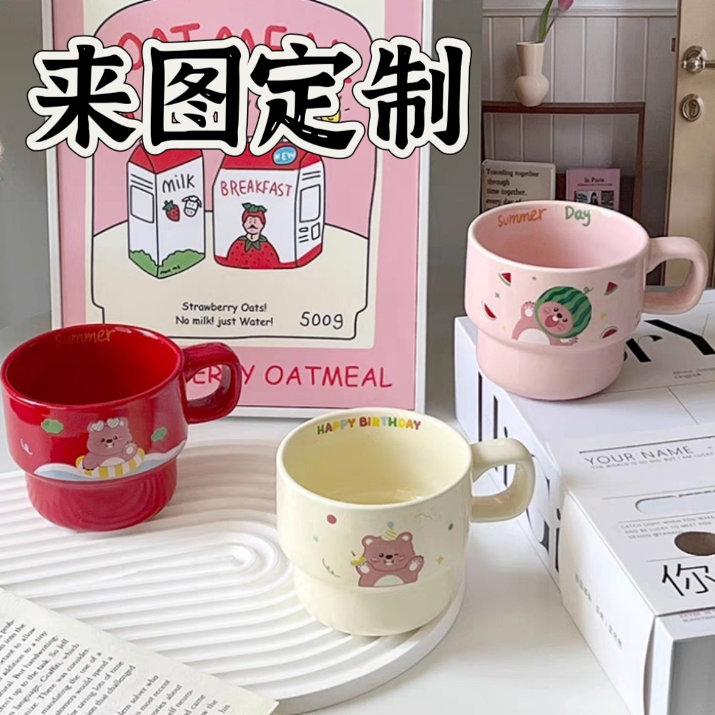 곰 쌓인 컵 세라믹 마시는 찻잔 커플 커피 머그잔 그림 사용자 정의 로고 찻잔 동반 선물스토어 가기