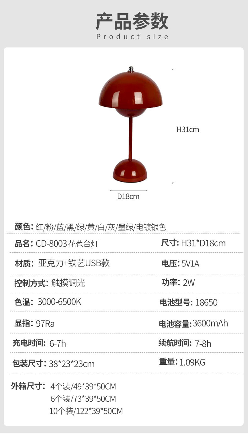 웨딩 테이블 램프 머리맡 분위기 램프 야간 조명 침실 머리맡 램프 소파 충전식 테이블 램프 버섯 램프 꽃 봉오리 테이블 램프스토어 가기