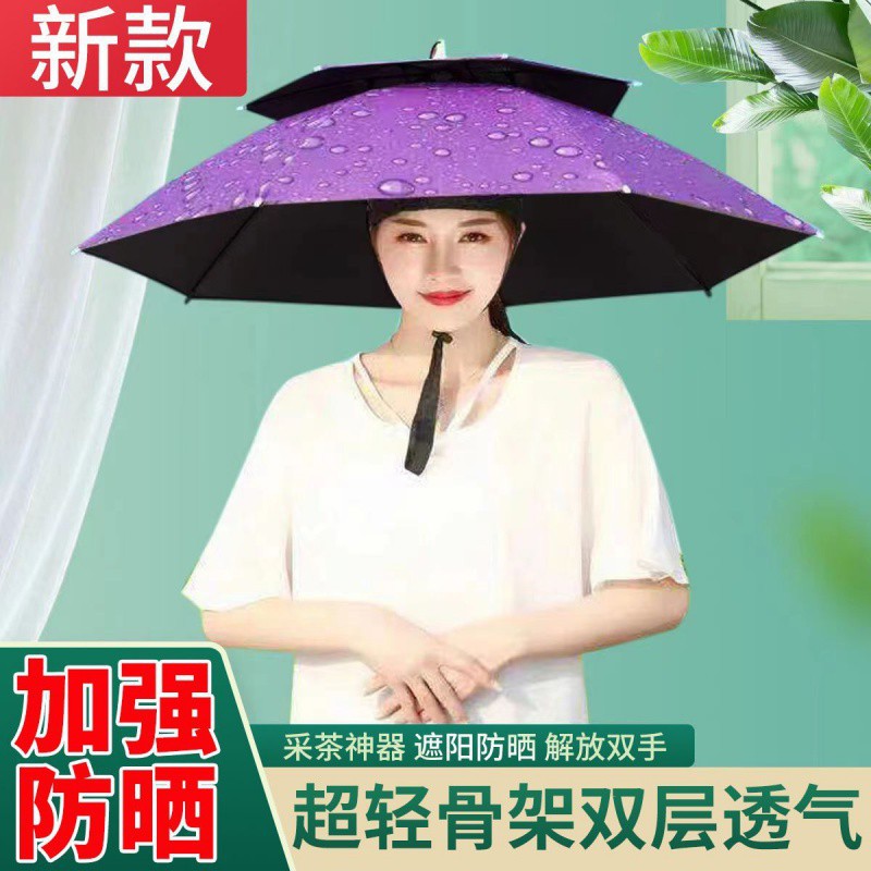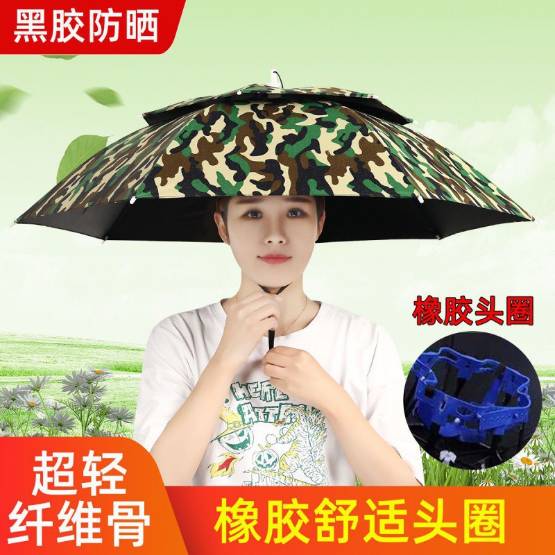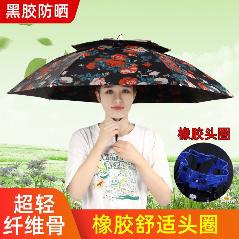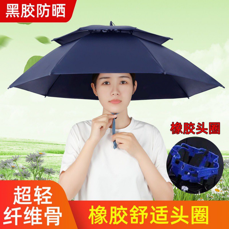 우산 모자 머리 우산 검은 접착제 안티-UV 태양 보호 태양 우산 낚시 사이클링 야외 차 따기 위생 모자 우산