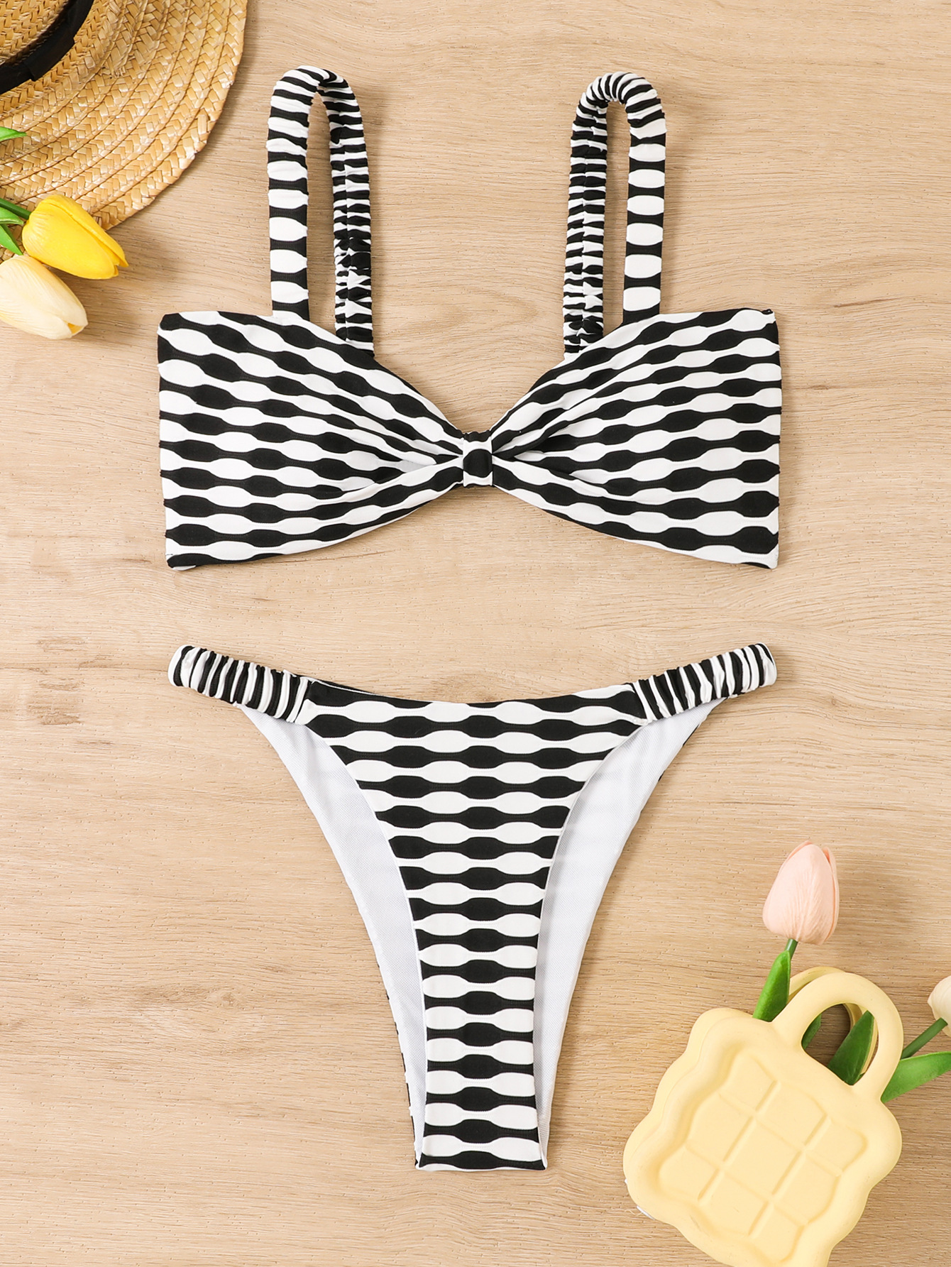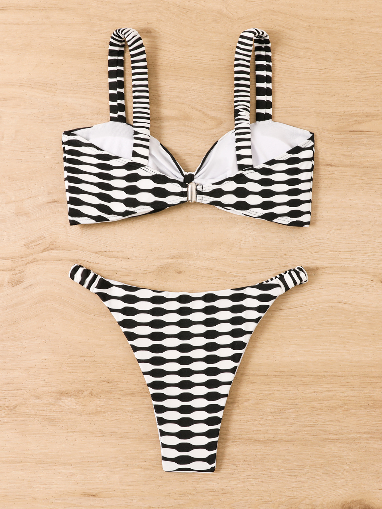 2024 새로운 유럽과 미국의 대외 무역 다색 인쇄 줄무늬 비키니 스트랩 백리스 섹시 타이트 스플릿 수영복
