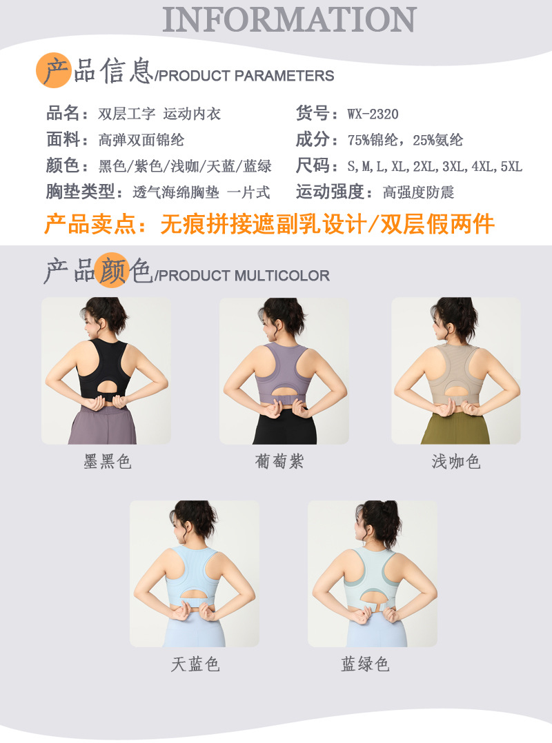 플러스 사이즈 커버하는 파라밀리아 스포츠 속옷 더블 어깨 스트랩 충격 방지 훈련 조끼 원피스 컵 I 자형 아름다운 등 피트니스 브라