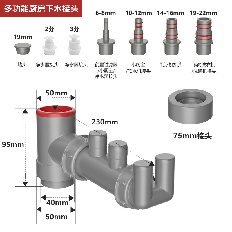 주방 싱크 드레인 파이프 밀봉 플러그 티 드레인 파이프 반향 방지 냄새 유물 야채 분지 배수 액세서리