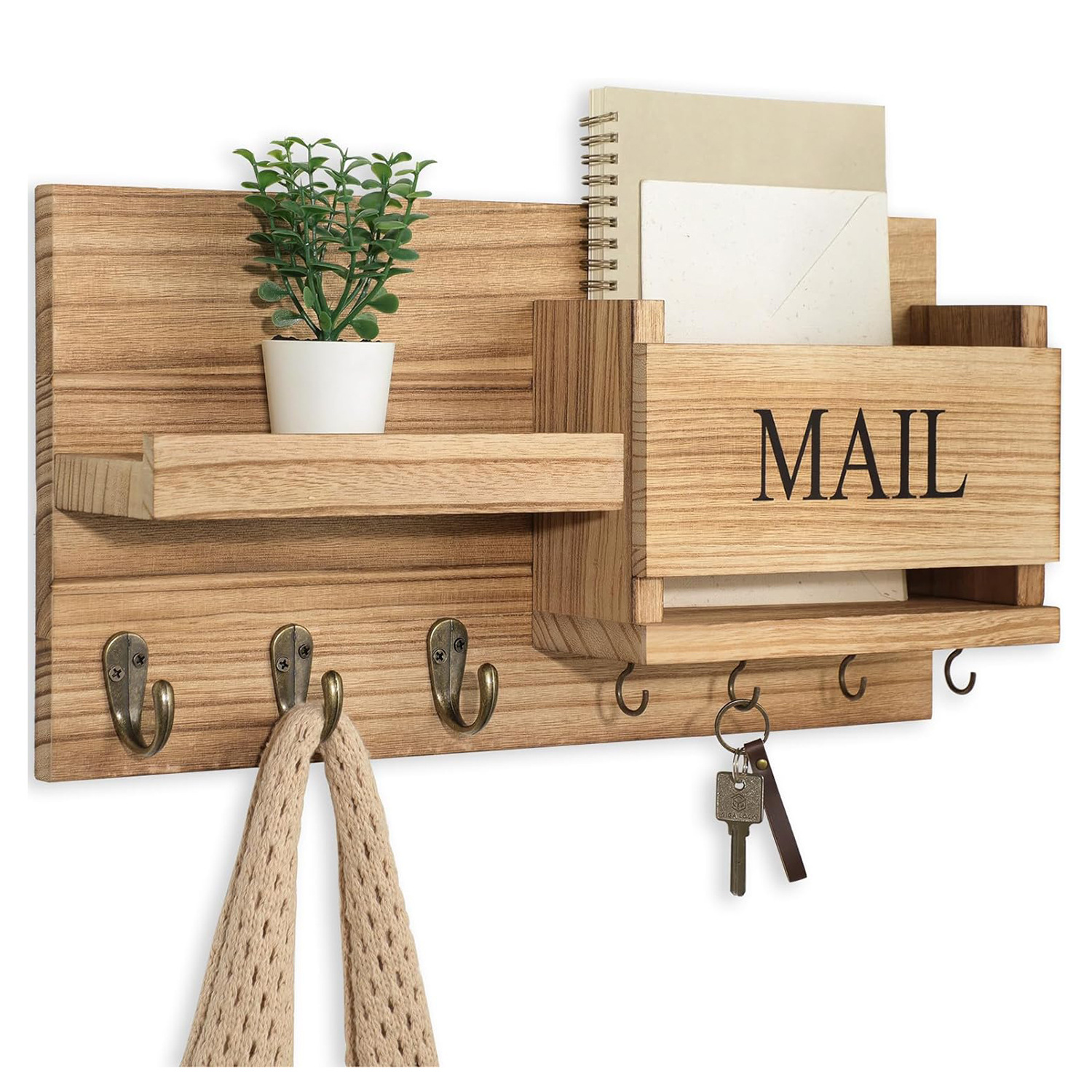 원목 벽걸이형 현관 열쇠 보관대 가정용 문걸이 옷걸이 가정용 수납 선반