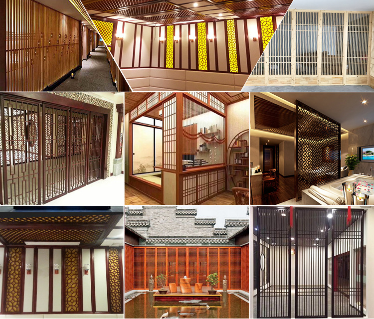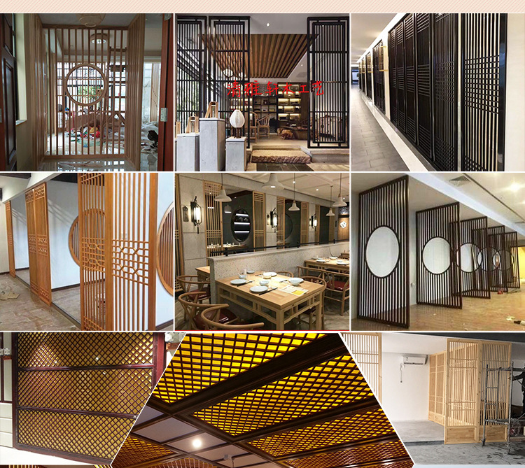 새로운 중국 스타일 일본 스크린 파티션 벽 중공 단단한 나무 격자 간단한 입구 입구 TV 배경 벽 나무 격자