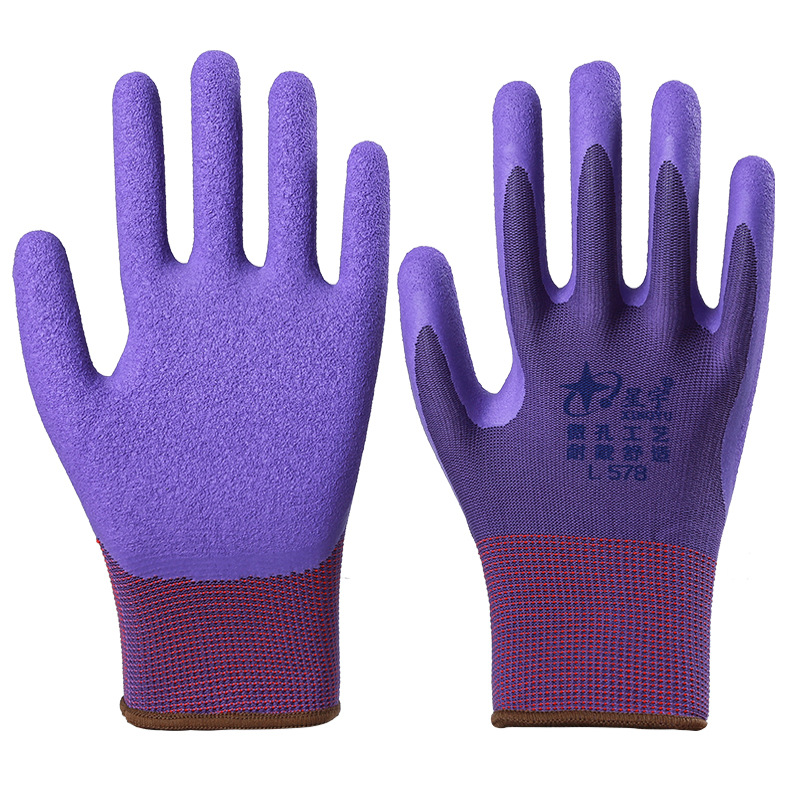 Xingyu L578 라텍스 폼 부드러운 내마모성 미끄럼 얇은 통기성 노동 보호 접착제 두부 보호 장갑