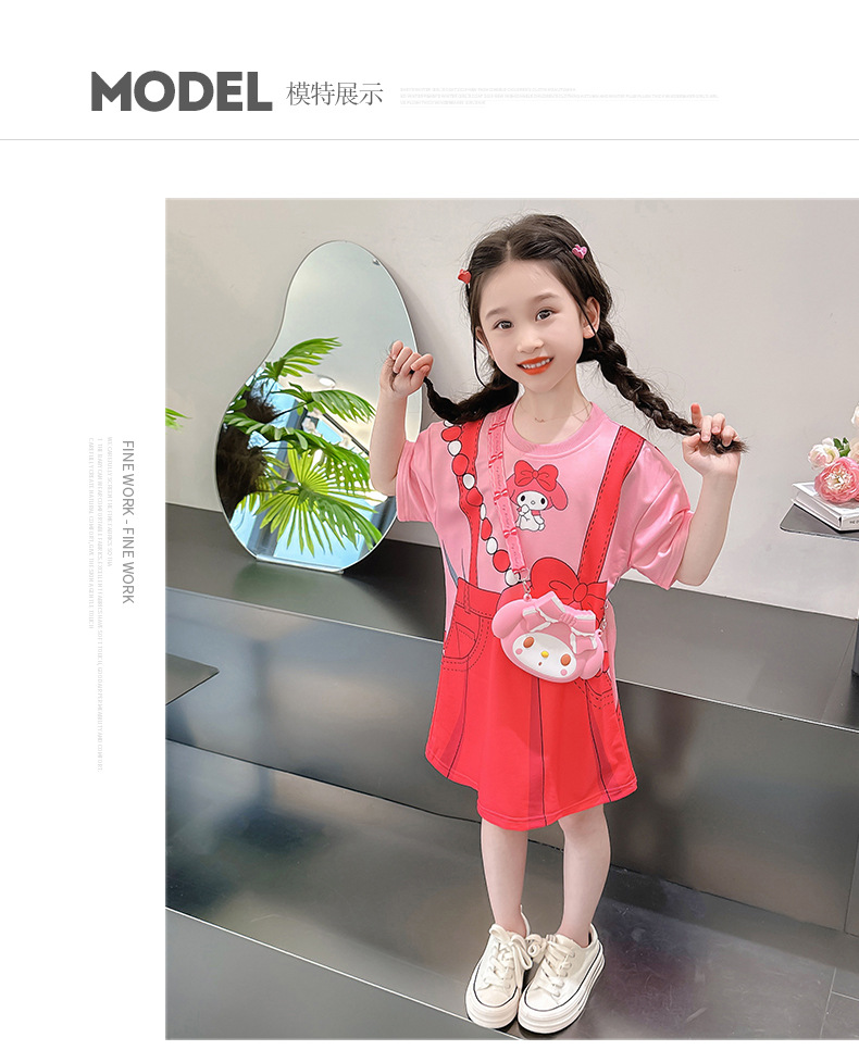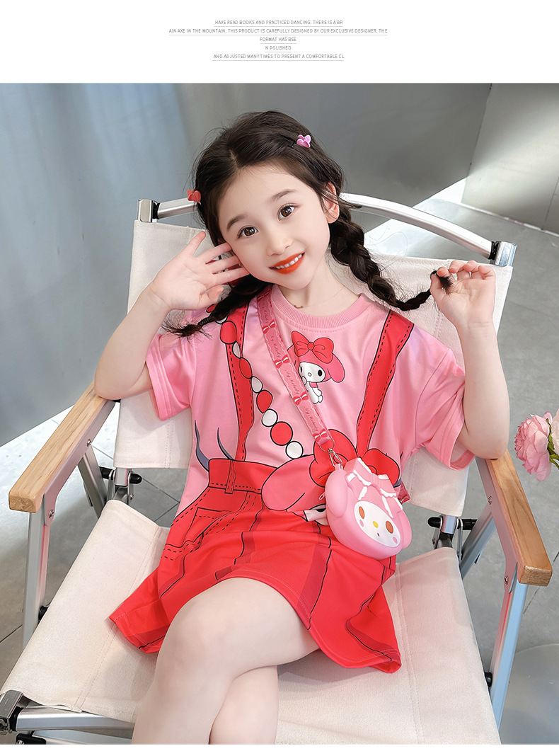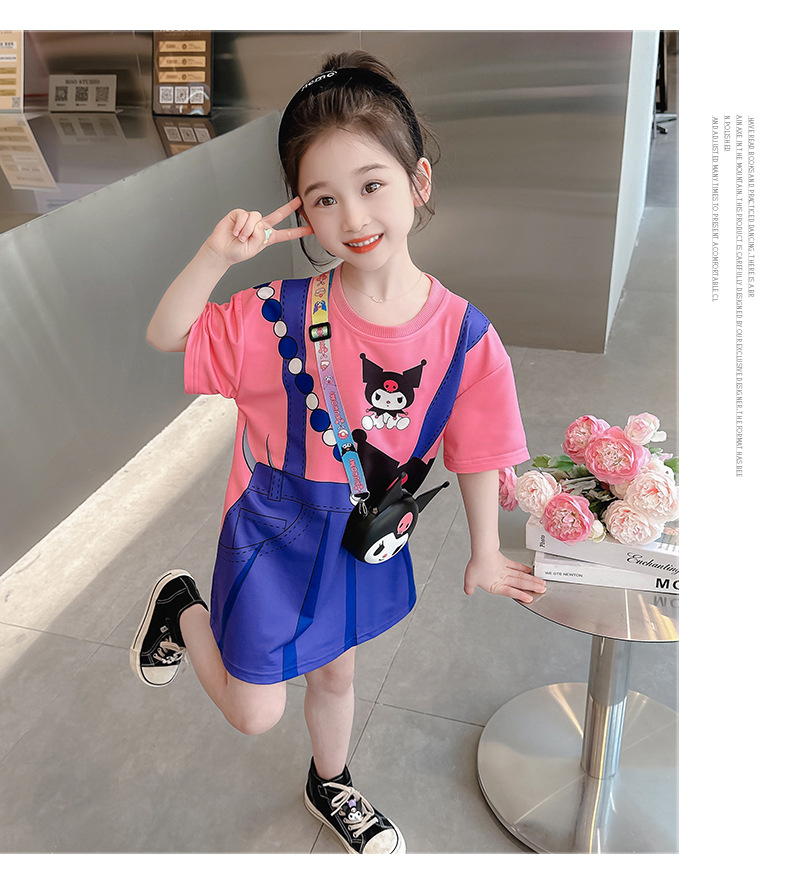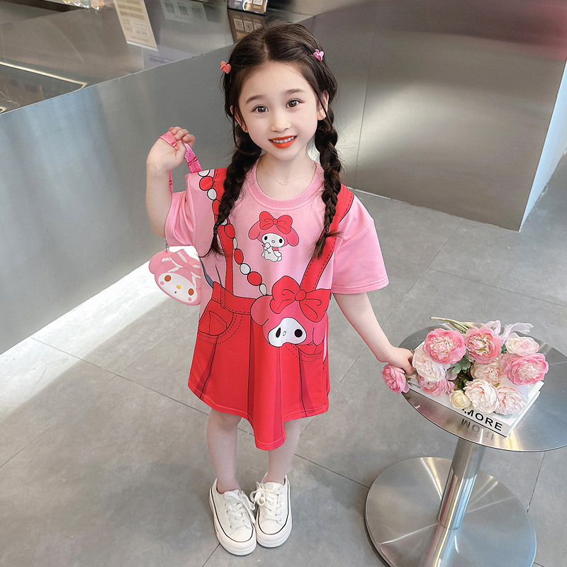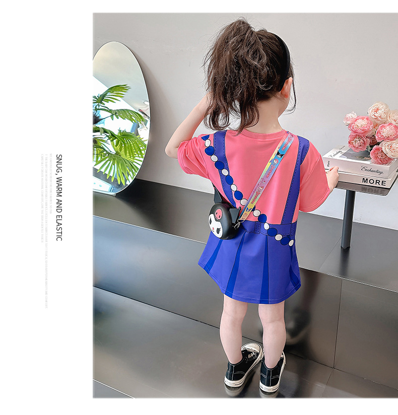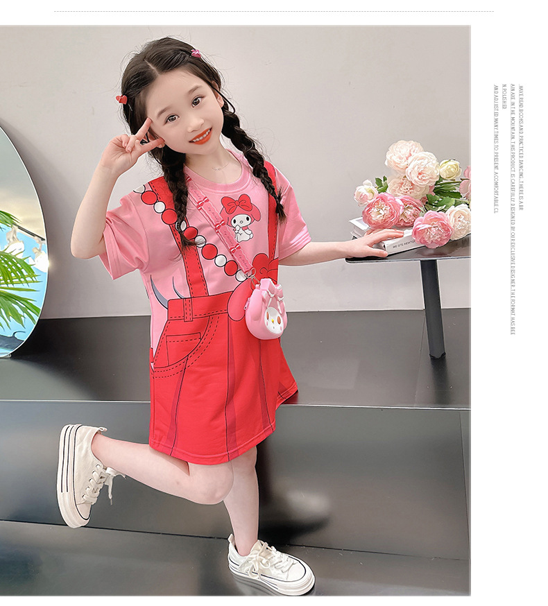 여자 캐주얼 만화 치마 여름 2024 새로운 어린이 여름 티셔츠 치마 아기 소녀 가짜 투피스 원피스스토어 가기
