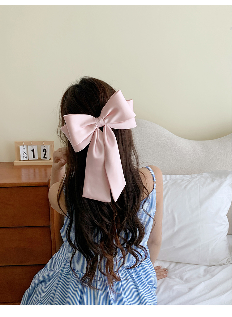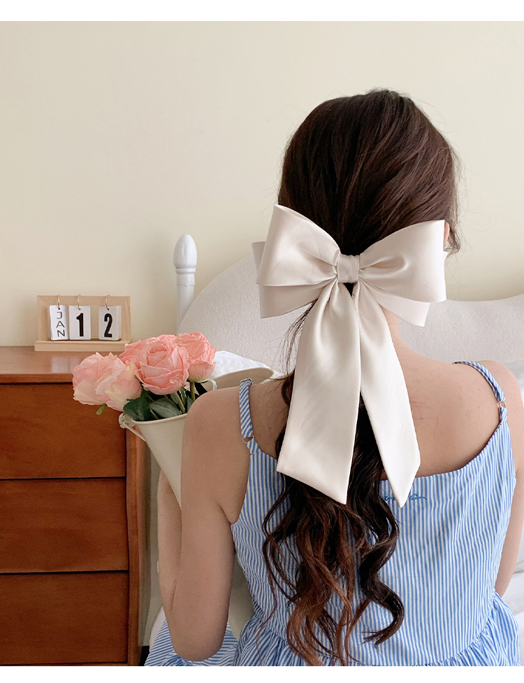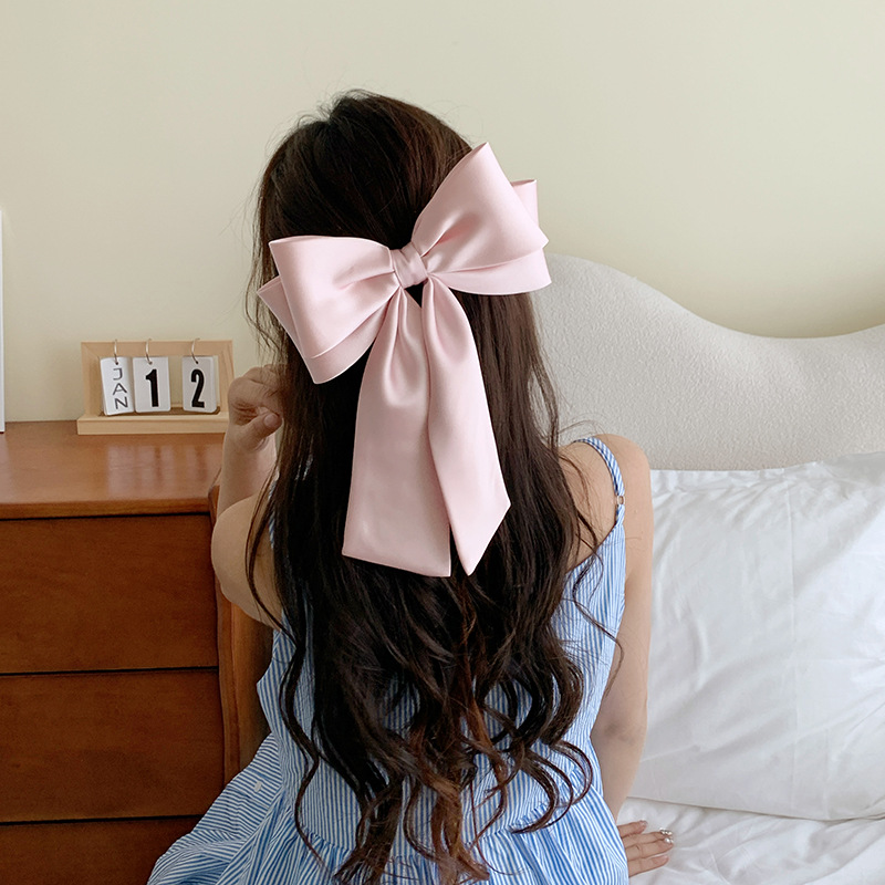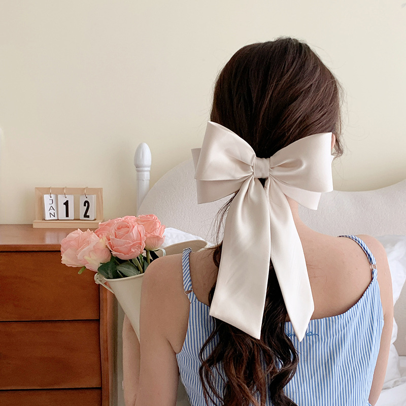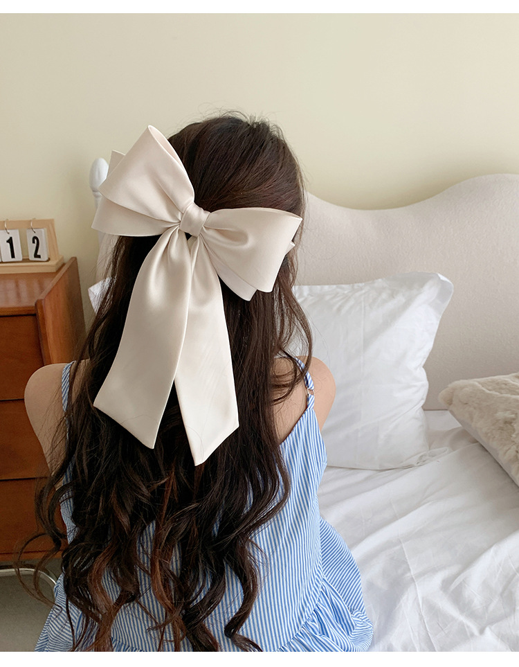 프랑스 하이 엔드 새틴 활 헤어핀 오버 헤드 하프 타이 스프링 클립 여성용 우아한 탑 클립 헤드웨어스토어 가기
