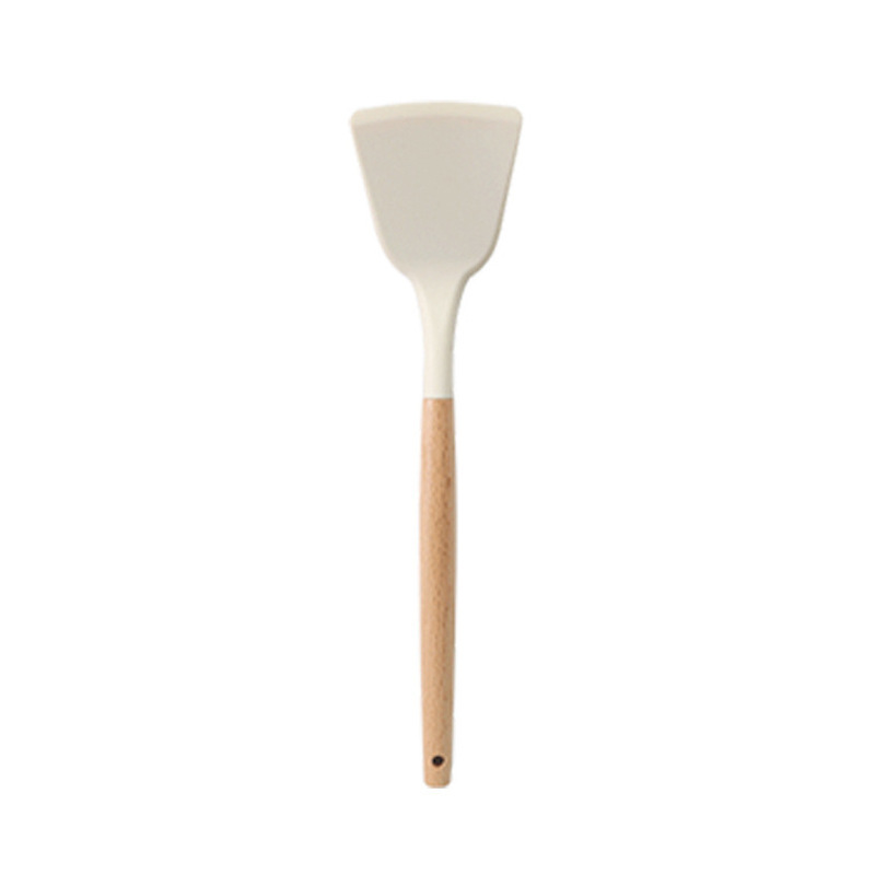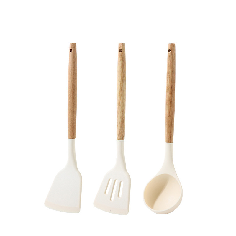 단단한 나무 손잡이 실리콘 주방용품 3 조각 세트 수프 스푼 스푼 스푼 고온 내성 식품 등급 비 스틱 팬 스테이크 튀김 세트