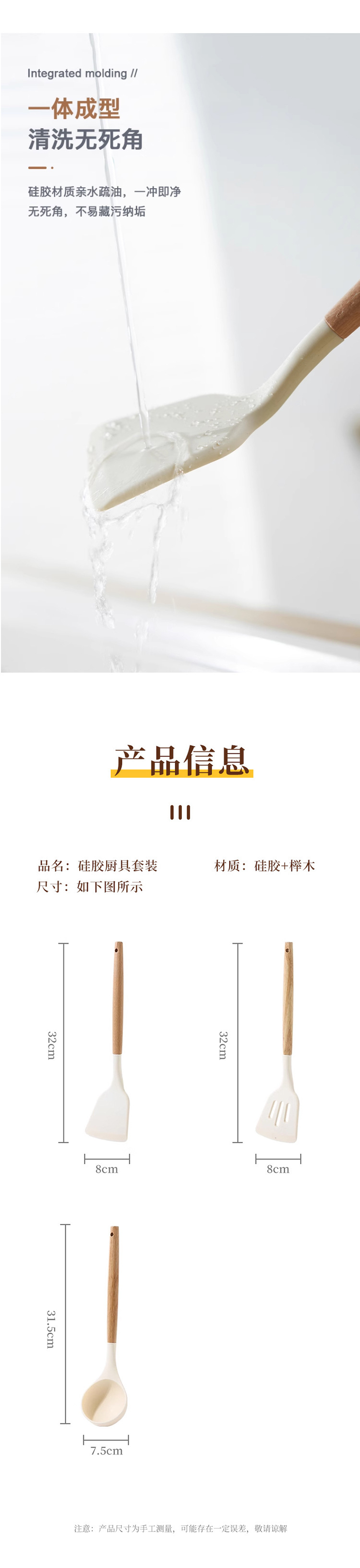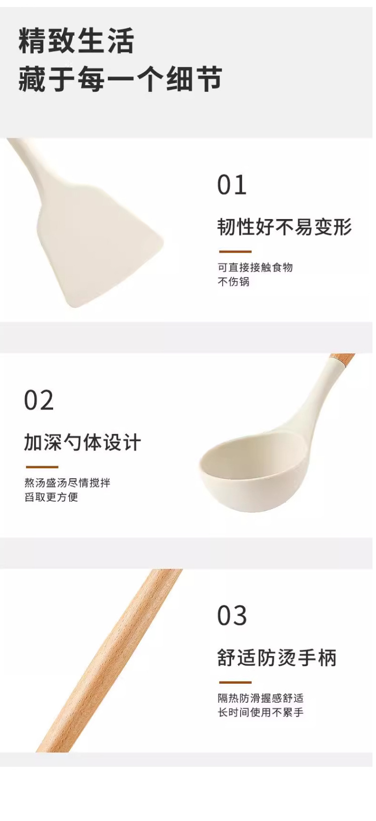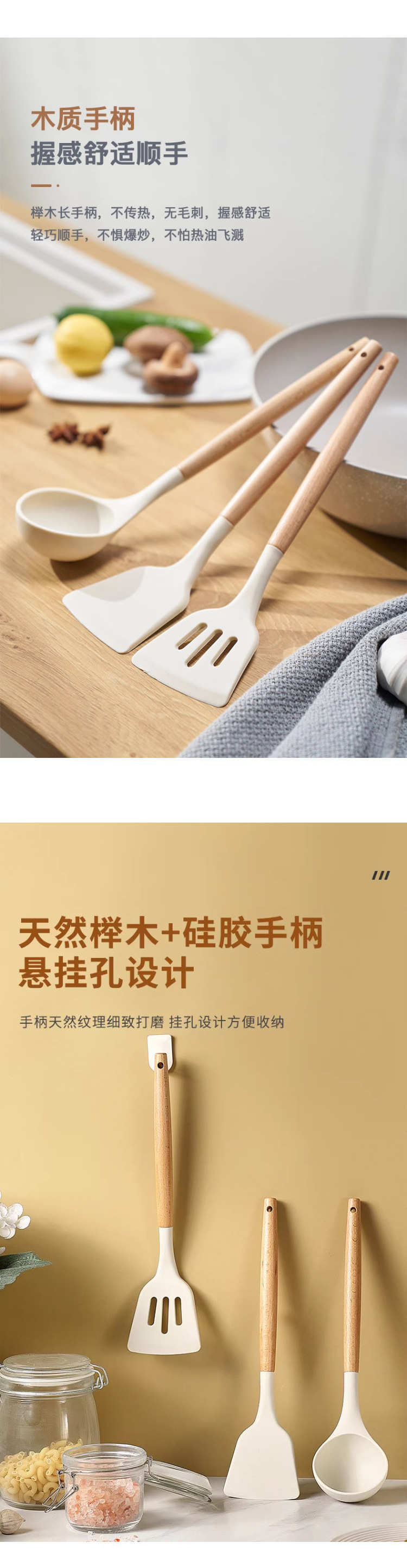 단단한 나무 손잡이 실리콘 주방용품 3 조각 세트 수프 스푼 스푼 스푼 고온 내성 식품 등급 비 스틱 팬 스테이크 튀김 세트스토어 가기