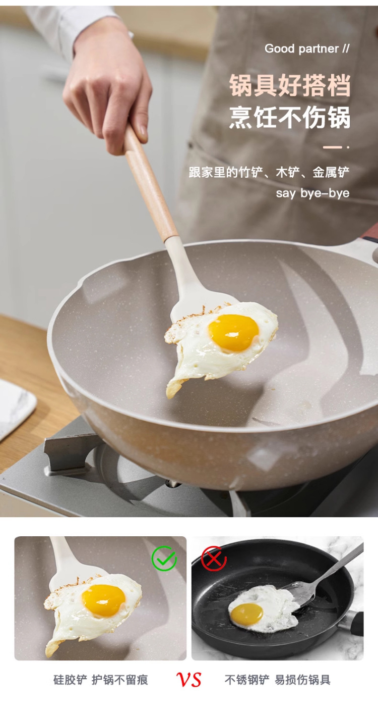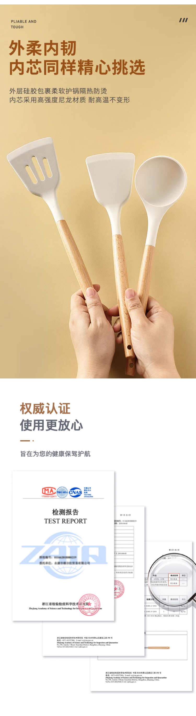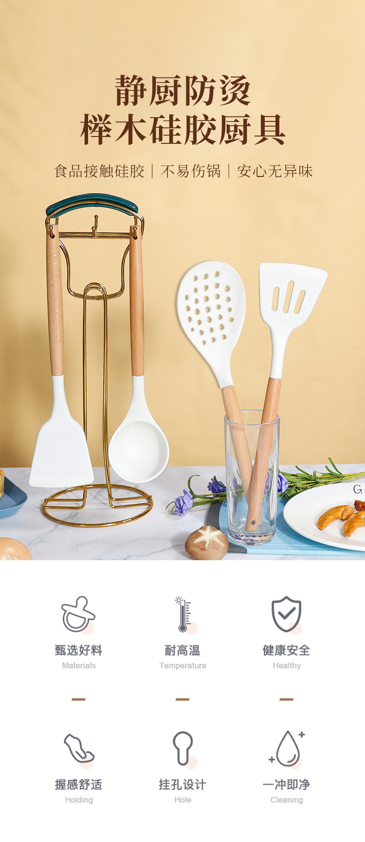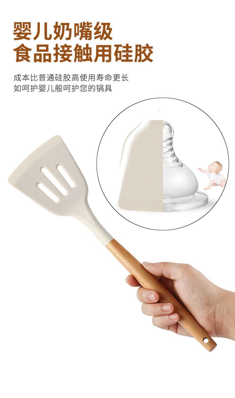 단단한 나무 손잡이 실리콘 주방용품 3 조각 세트 수프 스푼 스푼 스푼 고온 내성 식품 등급 비 스틱 팬 스테이크 튀김 세트스토어 가기