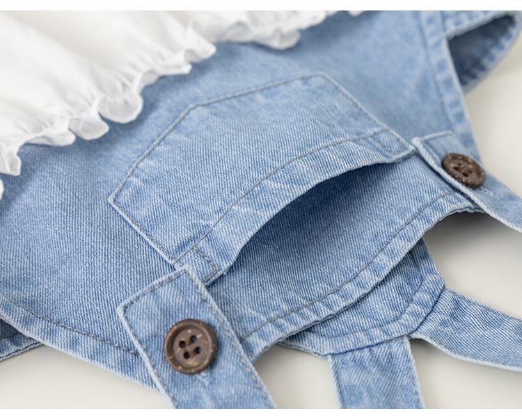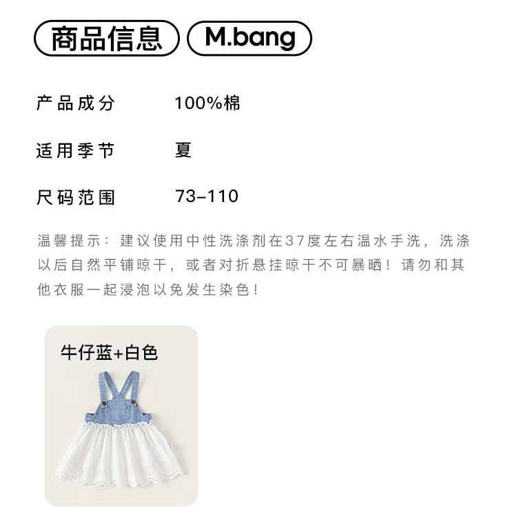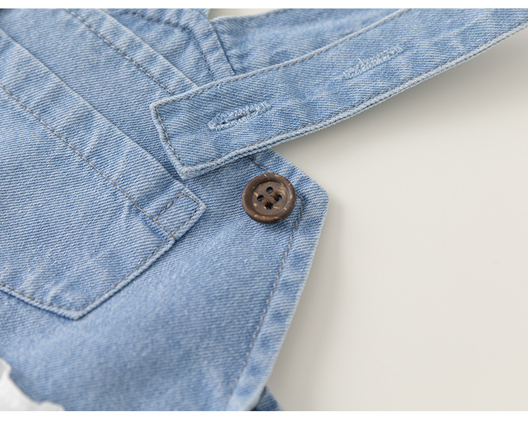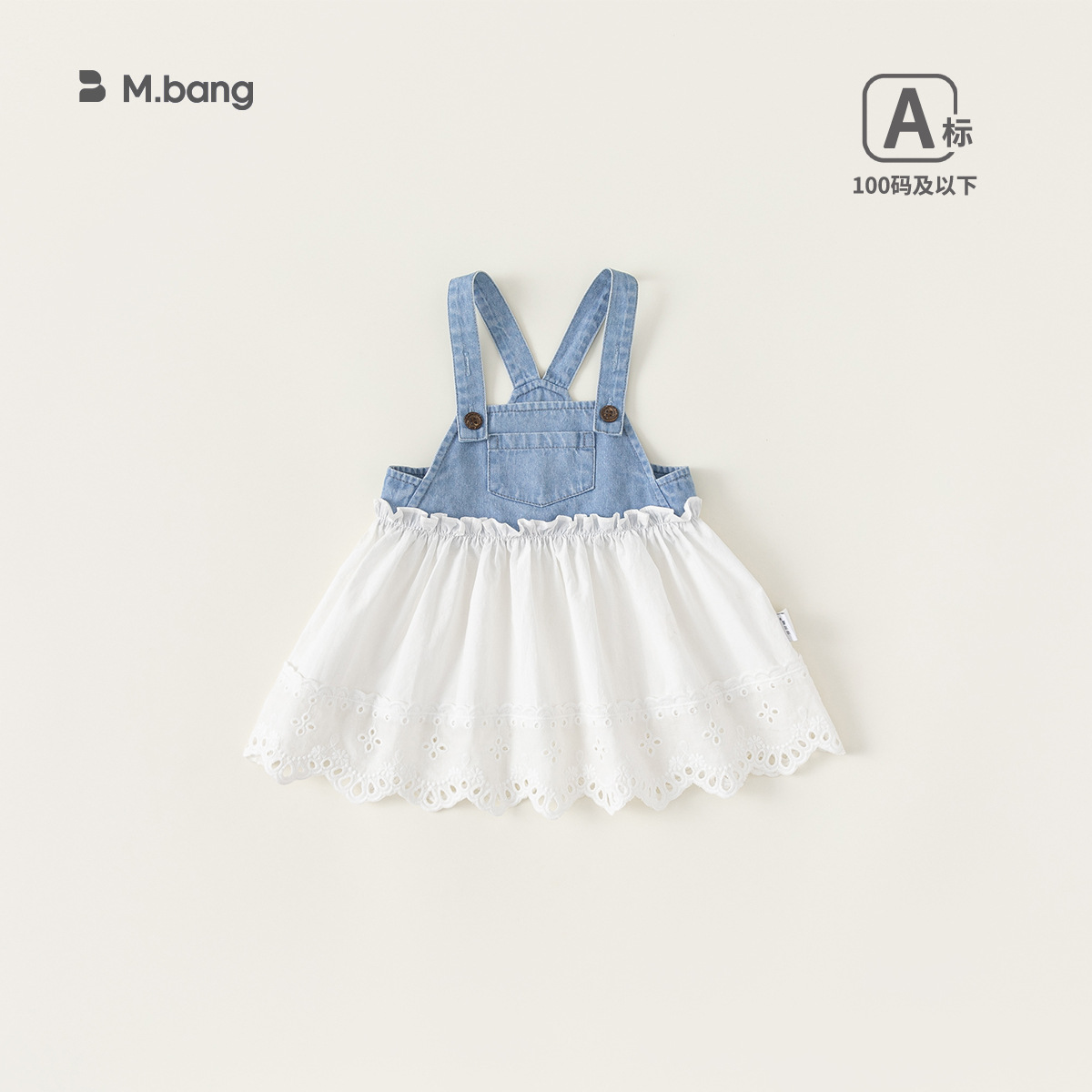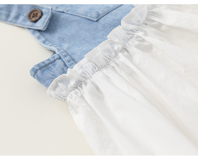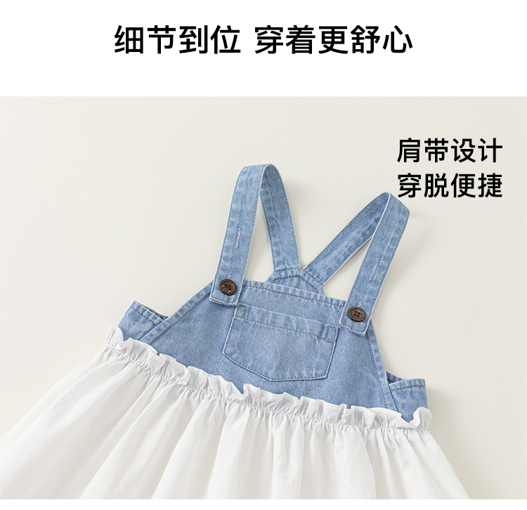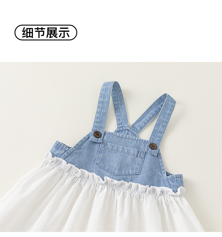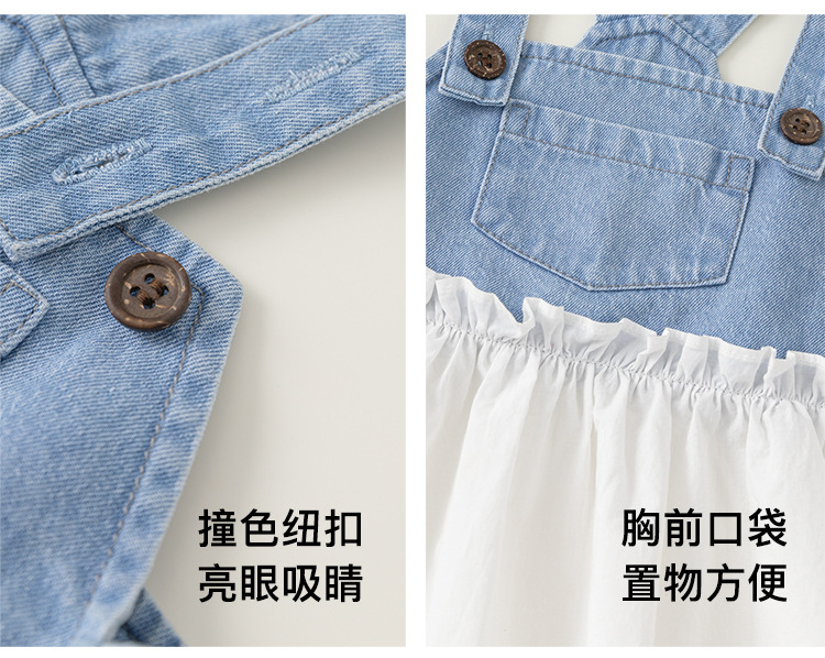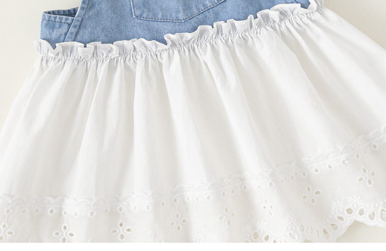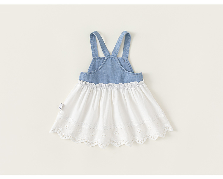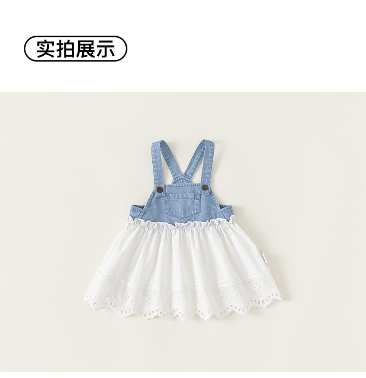 방산 여름 아기 데님 레이스 스티칭 스트랩 원피스 아기 소녀 레이스 슬링 원피스 XQ14227