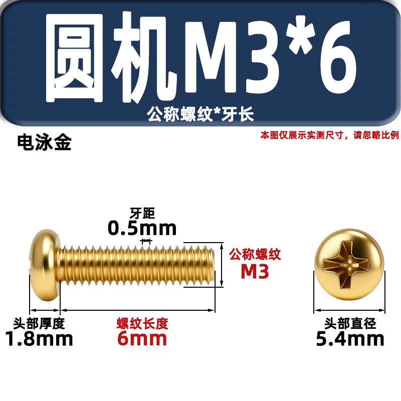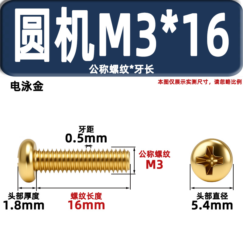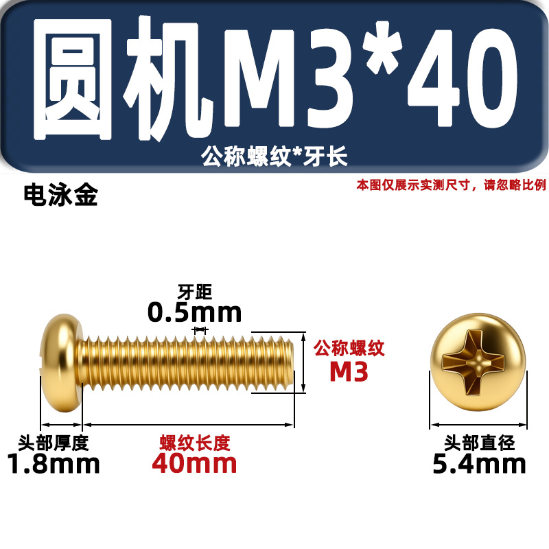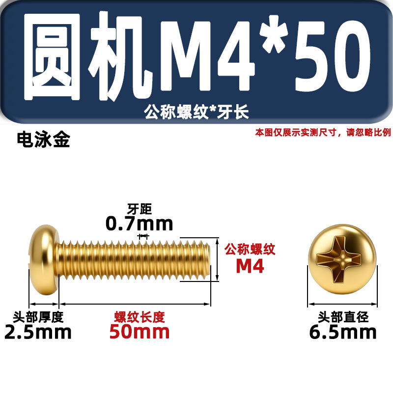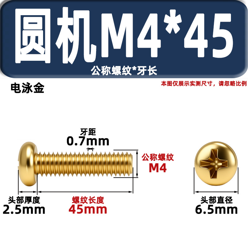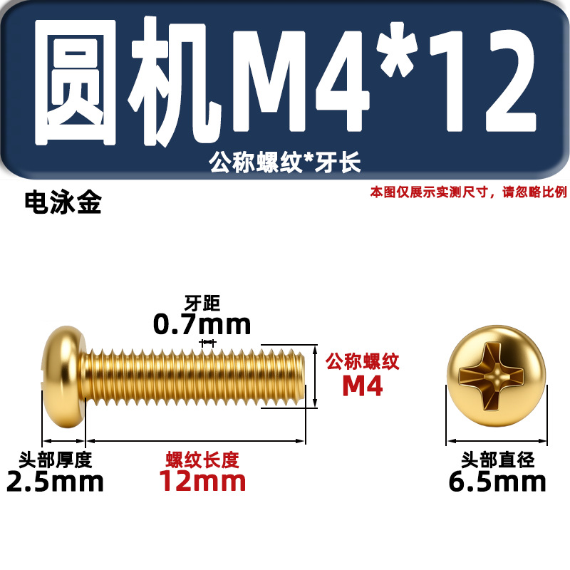 금색 접시머리 나사, 탄소강 십자홈 플랫헤드 라운드헤드 전기도금 금 플랜지 너트, 와셔, 미터스, 금색 모조 구리