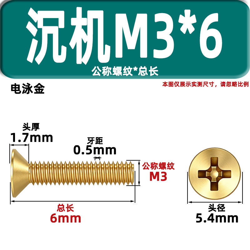• 카운터 침몰 헤드 기계 와이어 KM3 * 6 골드