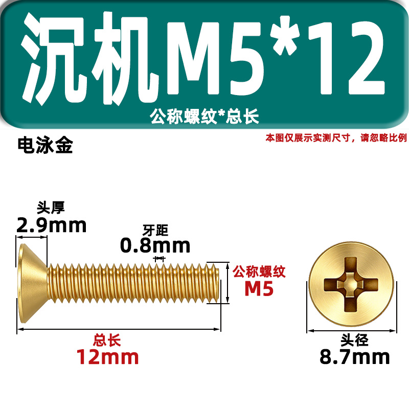 • 카운터 침몰 헤드 기계 와이어 KM5 * 12 골드