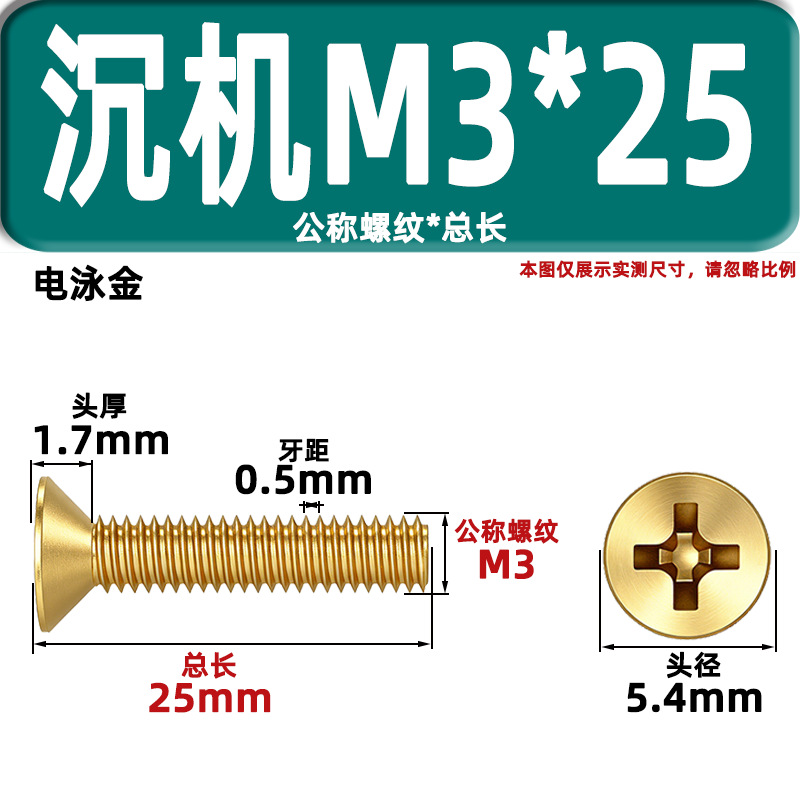 • 카운터 침몰 헤드 기계 와이어 KM3 * 25 골드
