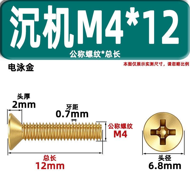 • 카운터 침몰 헤드 기계 와이어 KM4 * 12 골드