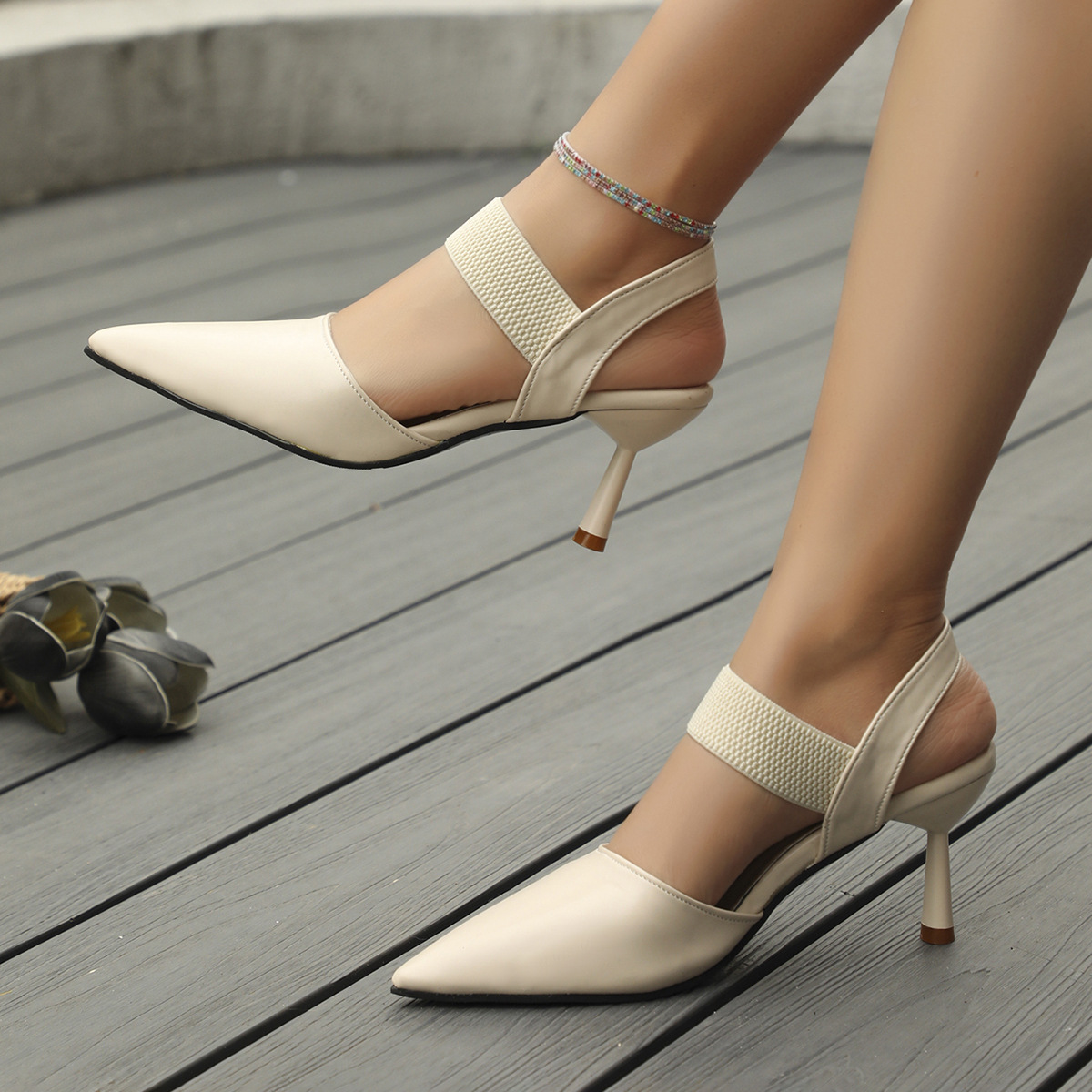2024 새로운 유럽과 미국의 뾰족한 하이힐 샌들 대외 무역 플러스 사이즈 싱글 신발 얕은 입 바오터우 패션 샌들 도매스토어 가기