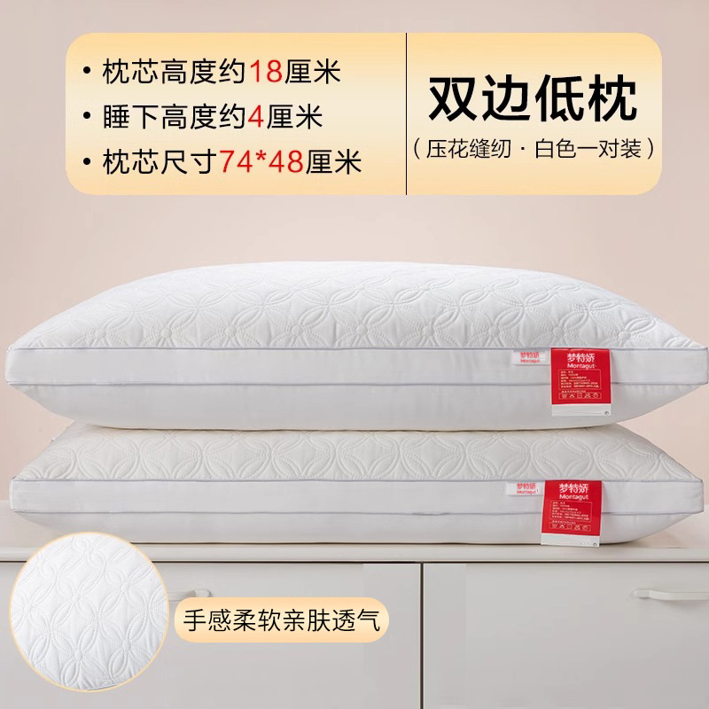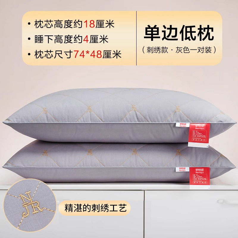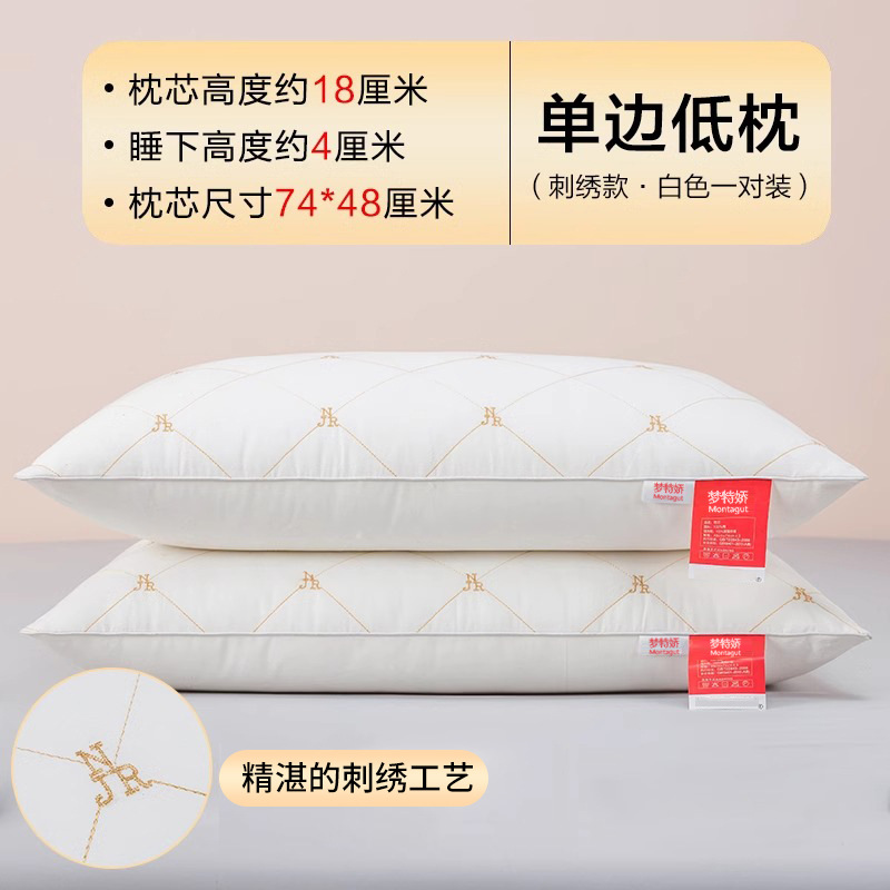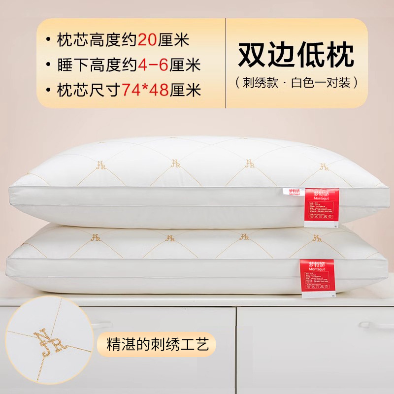 • 클래스 A 항균 방지 진드기-일방적 자수 흰색 낮은 베개