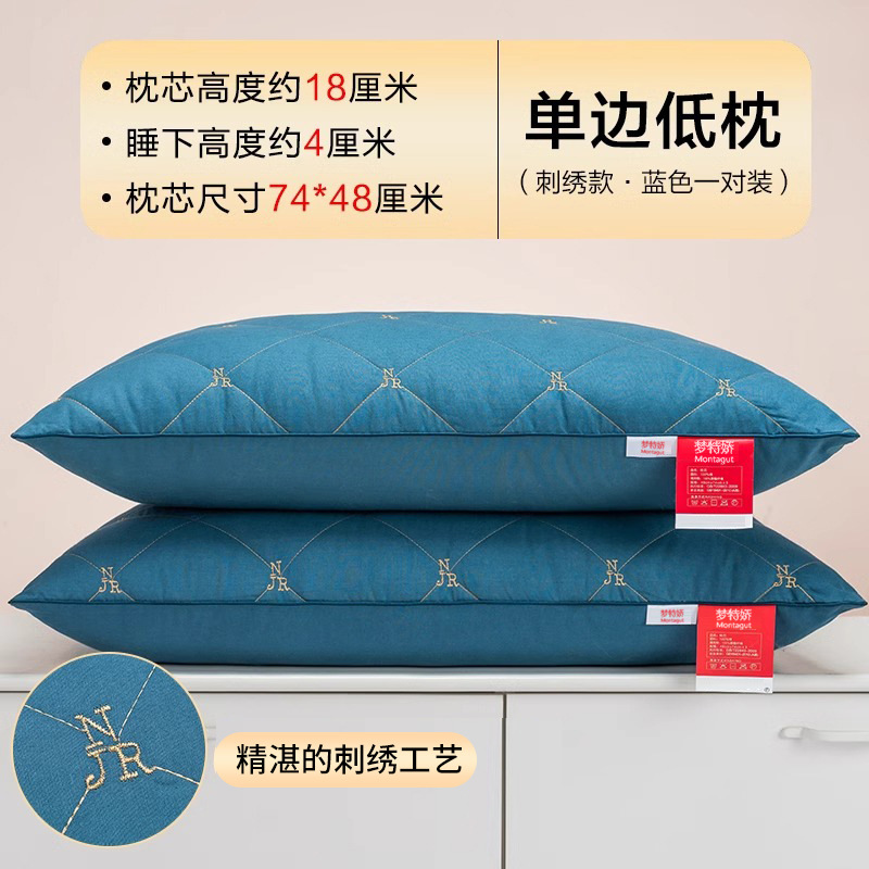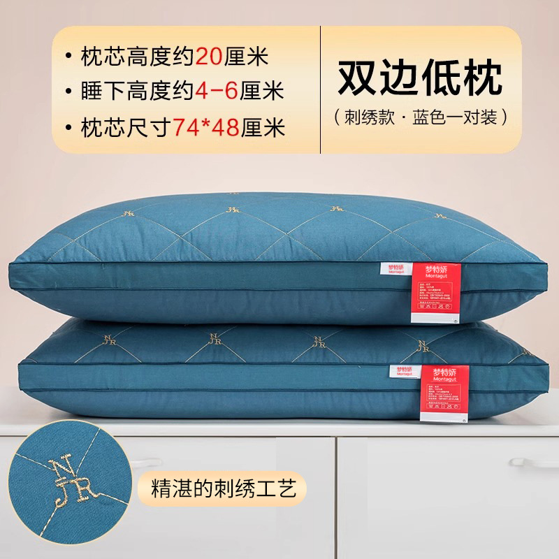 • 클래스 A 항균 방지 진드기-일방적 자수 블루 로우 베개