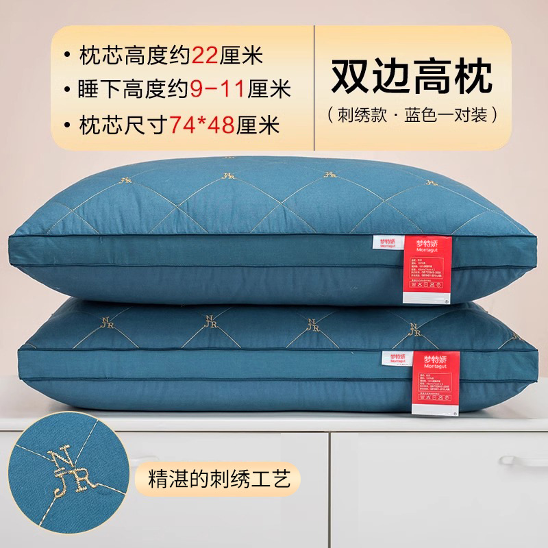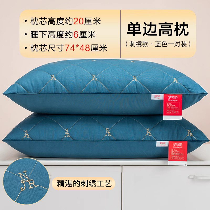 • 클래스 A 항균 방지 진드기-일방적 자수 블루 하이 베개