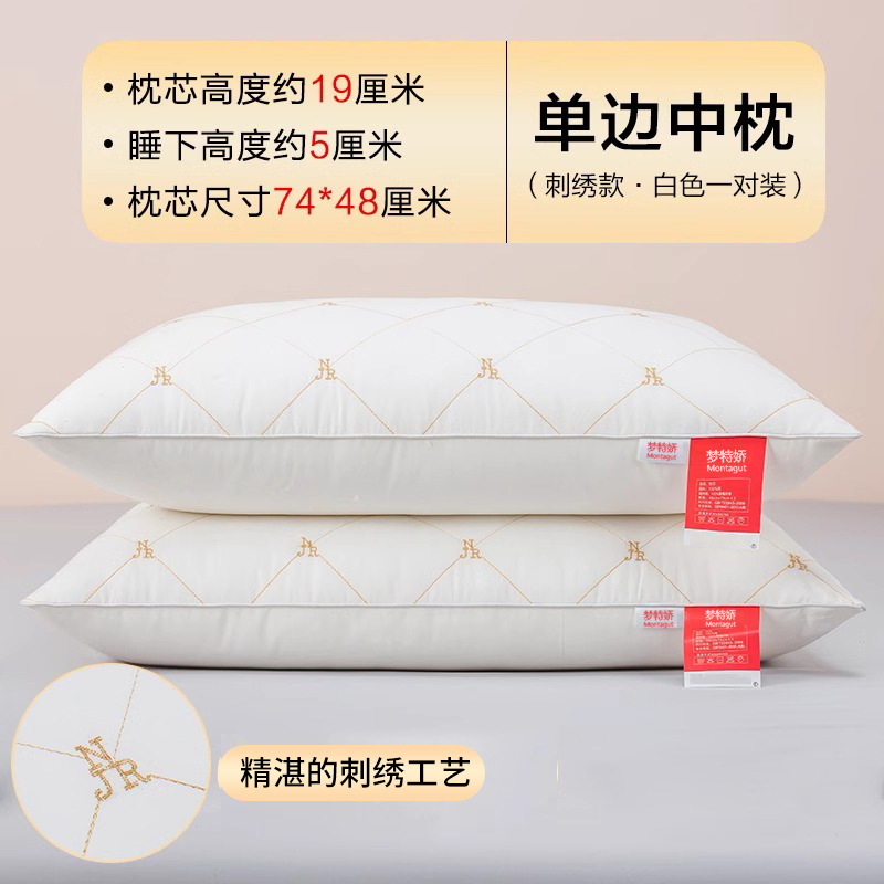 • 클래스 A 항균 방지 진드기-일방적 자수 흰색 중간 베개