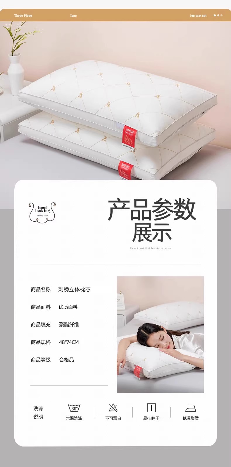 • 클래스 A 항균 방지 진드기-일방적 자수 화이트 하이 베개