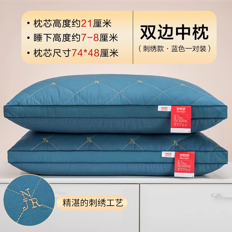 • 클래스 A 항균 방지 진드기-양자 자수 블루 하이 베개