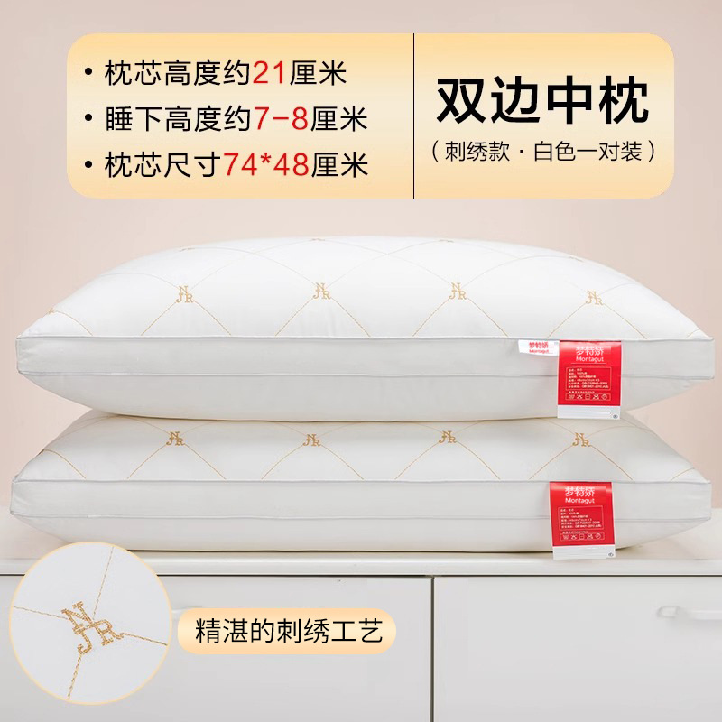 • 클래스 A 항균 방지 진드기-양측 자수 흰색 중간 베개