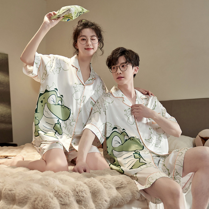 커플 잠옷 여름 반팔 반바지 얼음과 눈 실크 센스 만화 간단한 홈 의류 남성과 여성의 세트
