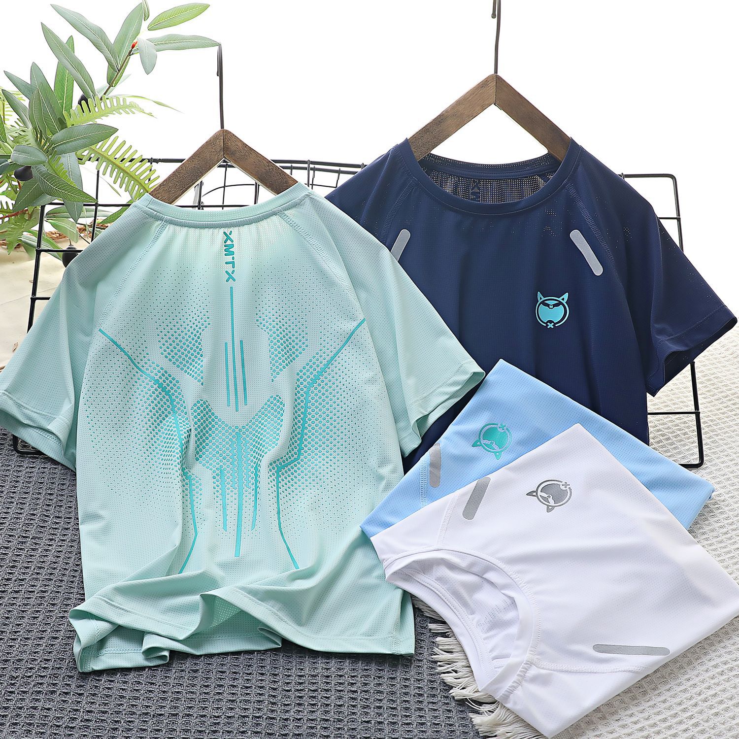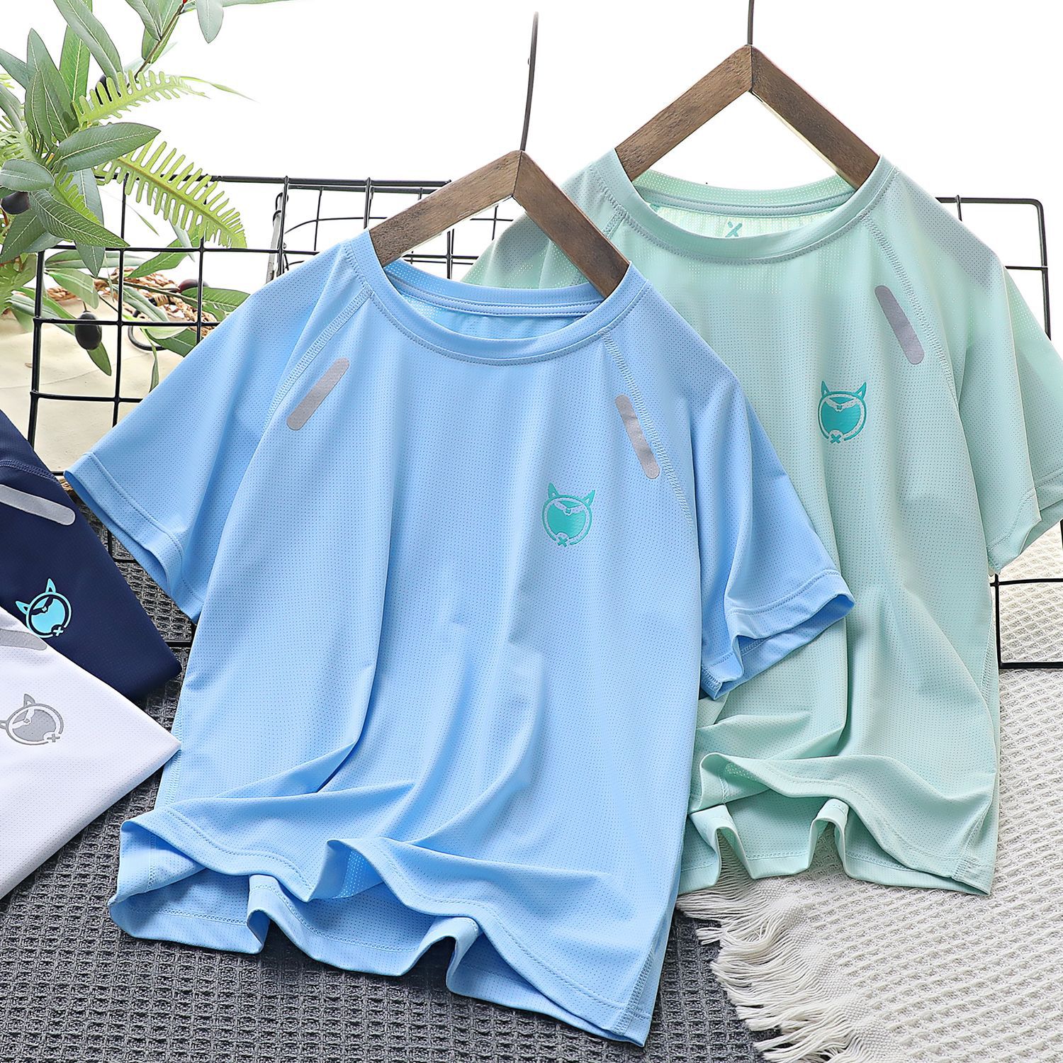 아동용 속건성 반팔 남아용 시원한 스포츠 여름 상의 나일론 P 메쉬 대형 아동용 4바늘 6실 아동용 티셔츠스토어 가기