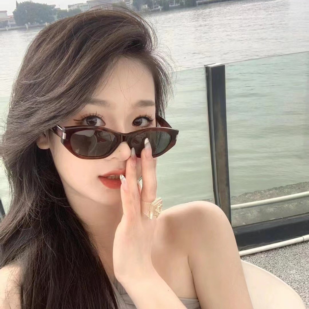 새로운 패션 한국식 코코아 거울 고양이 눈 선글라스 고급 레트로 앰버 레드 다크 브라운 Hawksbill 선글라스