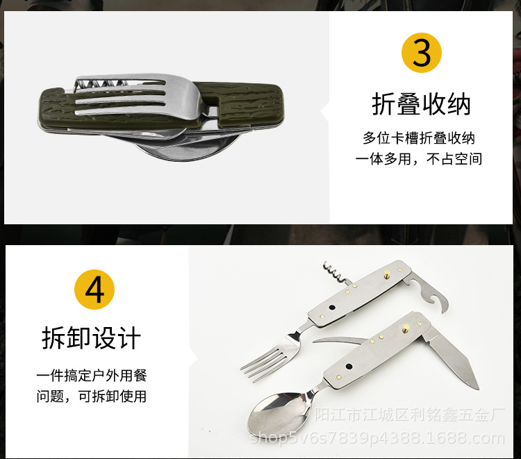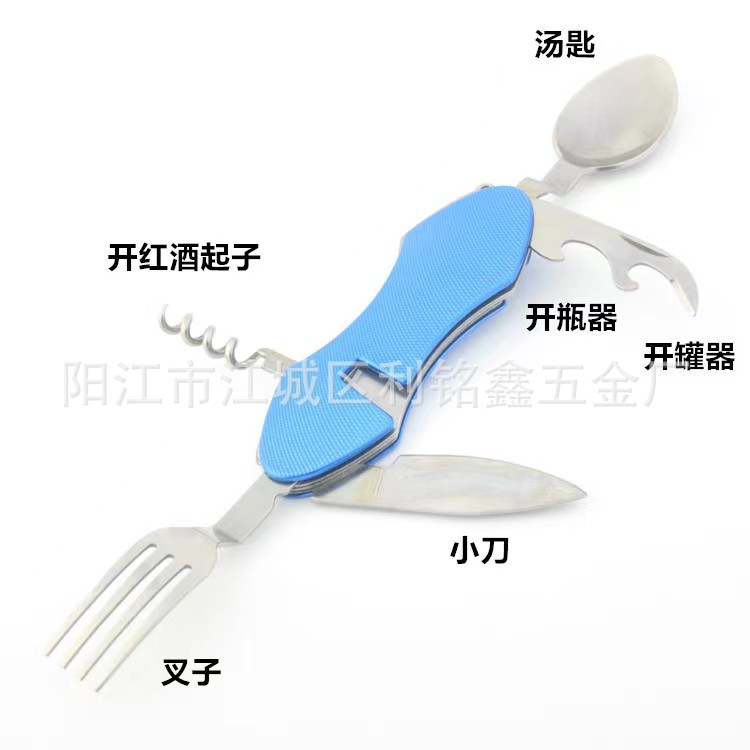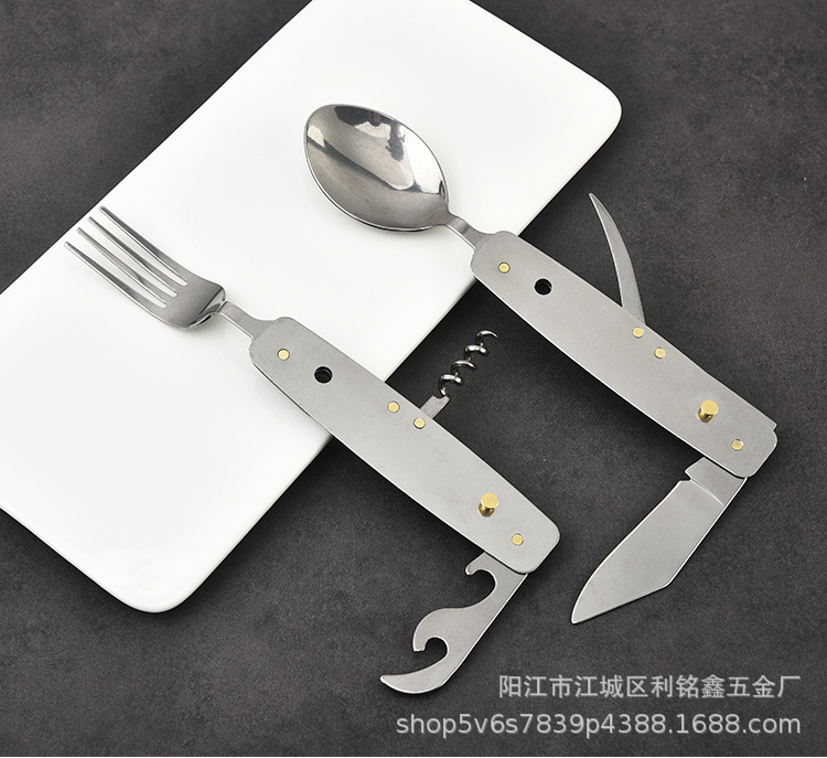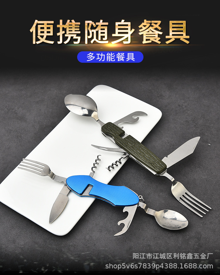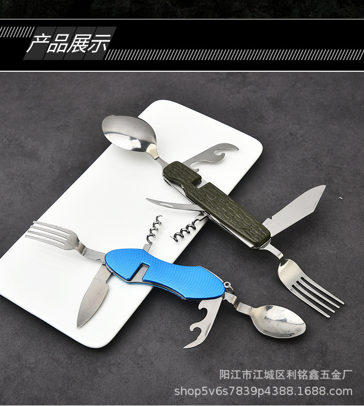 공장 직접 다기능 테이블 나이프 야외 접이식 분해 나이프 캠핑 휴대용 6 오픈 식기 조합 나이프 포크 스푼스토어 가기