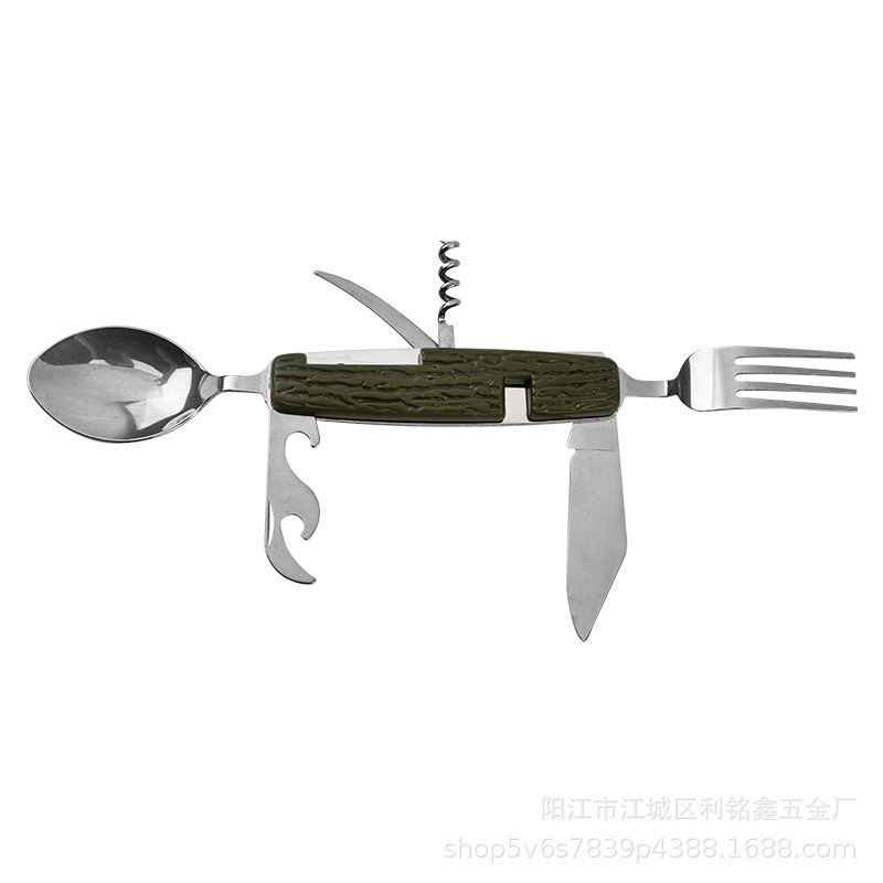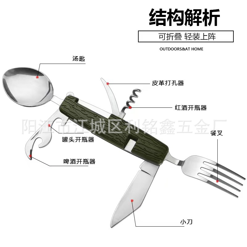 공장 직접 다기능 테이블 나이프 야외 접이식 분해 나이프 캠핑 휴대용 6 오픈 식기 조합 나이프 포크 스푼