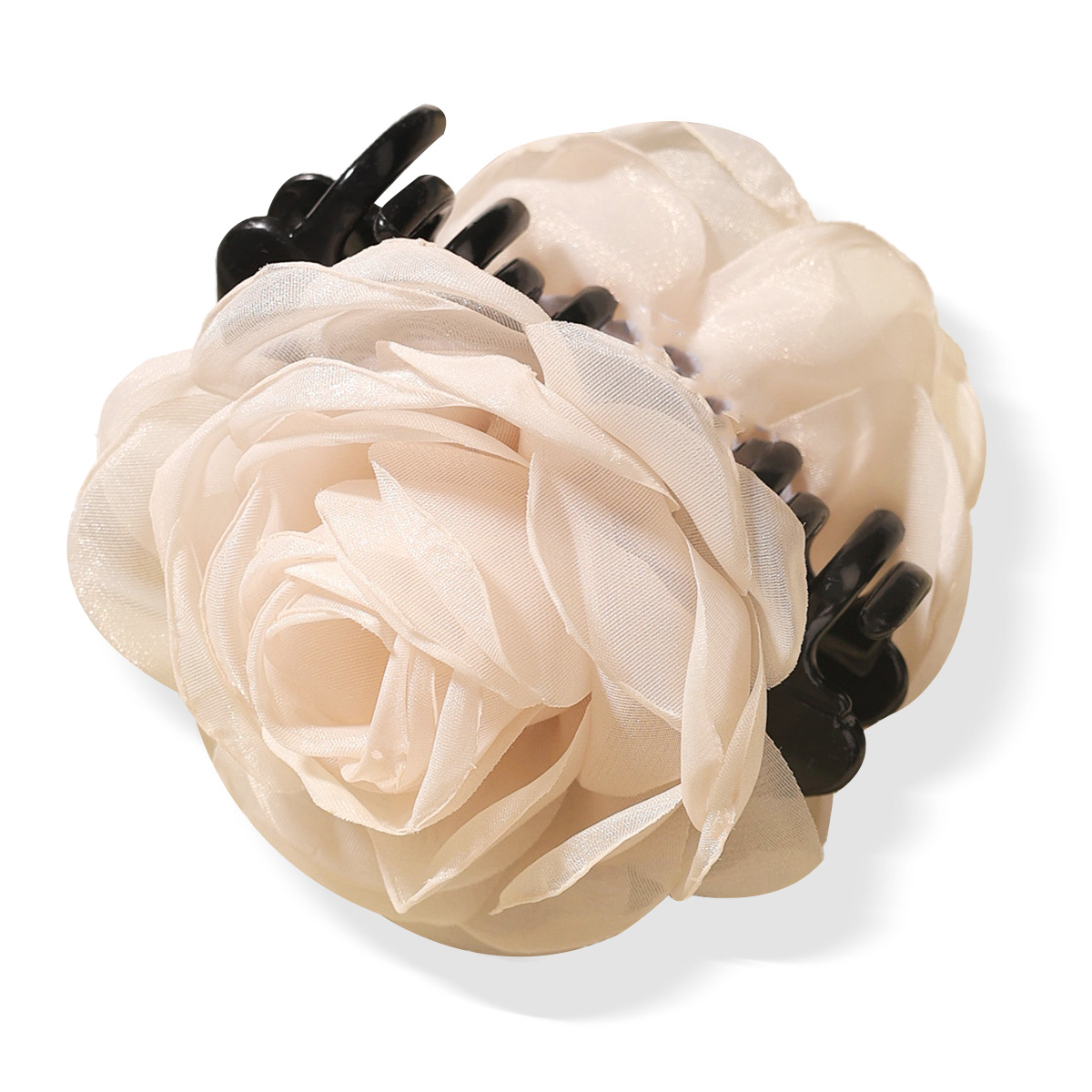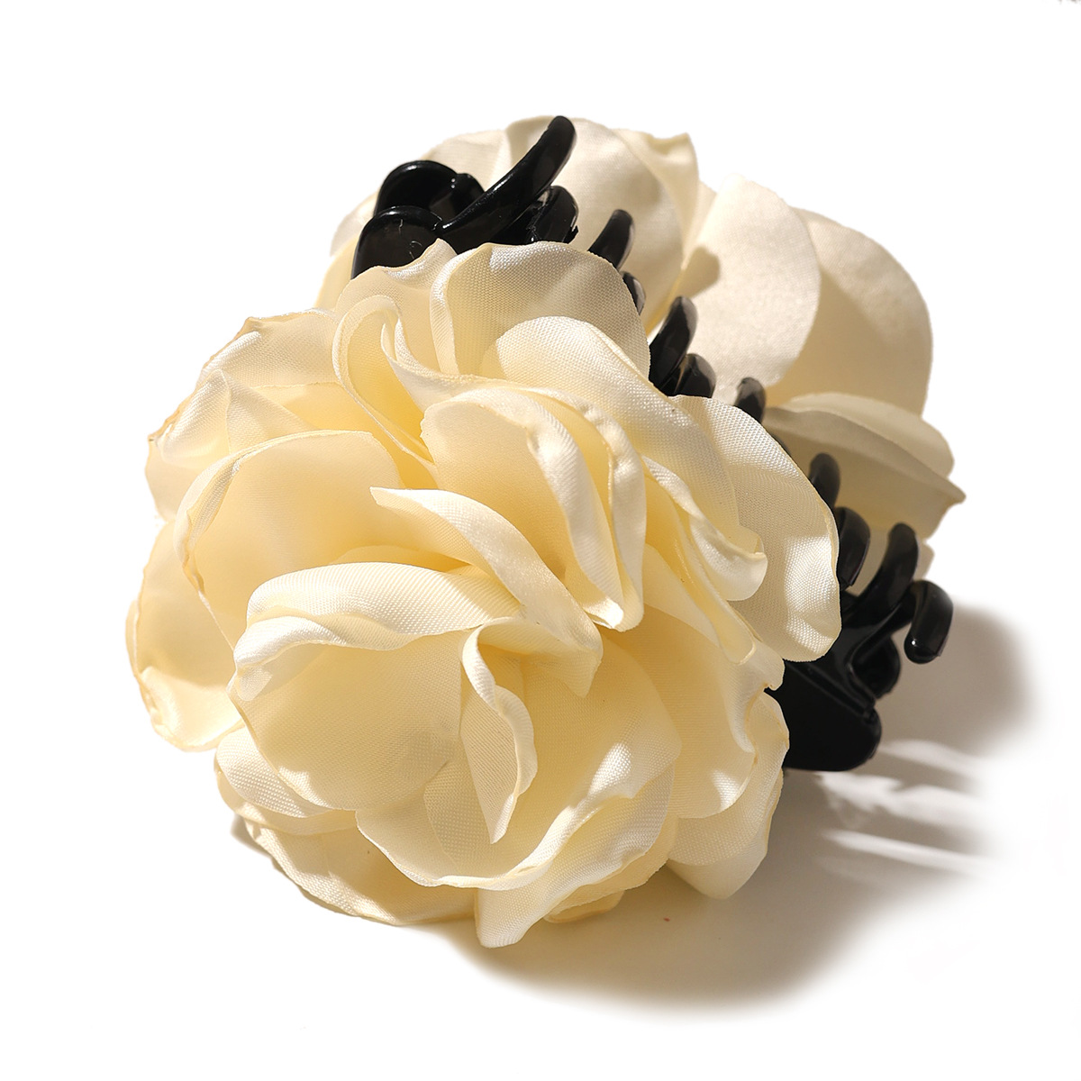 프랑스 새틴 동백 큰 그랩 클립 하이 엔드 로맨틱 플라워 그랩 클립 간단한 소녀의 뒤 머리 액세서리