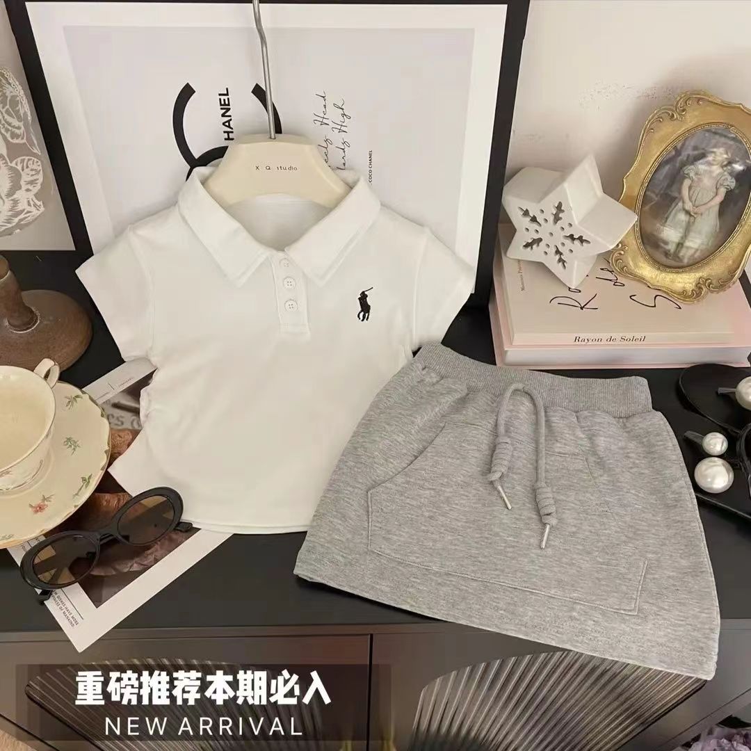 소녀 세트 2024 여름 새 스타일 폴로 셔츠 세련된 아기 소녀 캐주얼 스포츠 어린이 2 피스 트렌디 한 바지 스커트스토어 가기