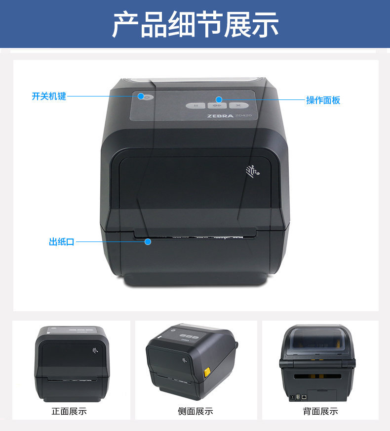 ZEBRA 제브라 ZD421CN 라벨 프린터 ZD421T 열전사 비건조형 외국 무역 바코드 프린터 열전사