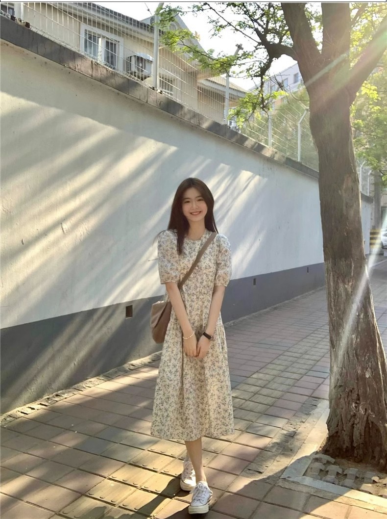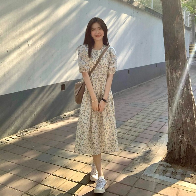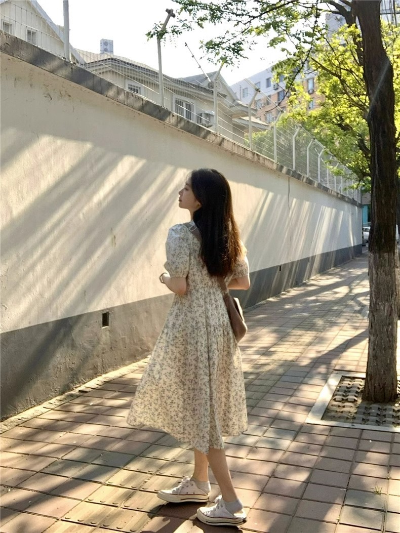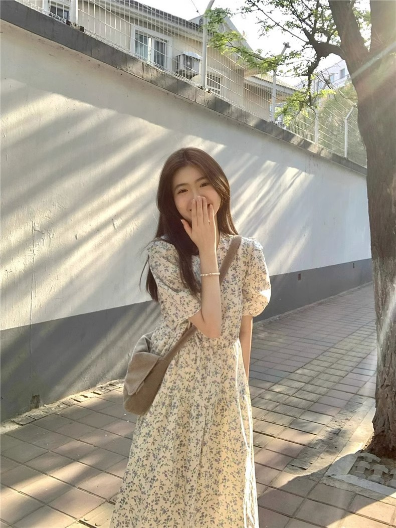 2024 년 여름 새로운 해변 휴가 우아한 꽃 원피스 Platycodon grandiflorum 차 브레이크 프랑스 캐주얼 미디 원피스 여성스토어 가기